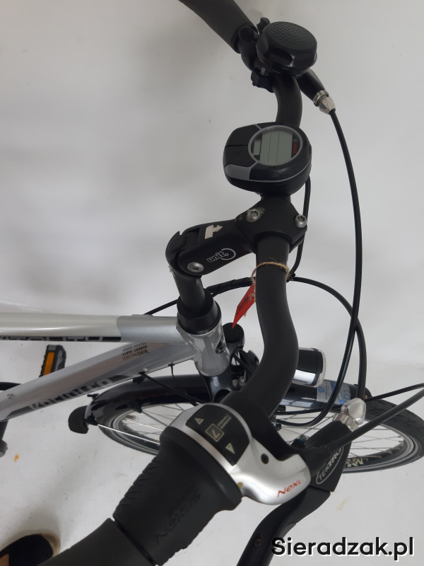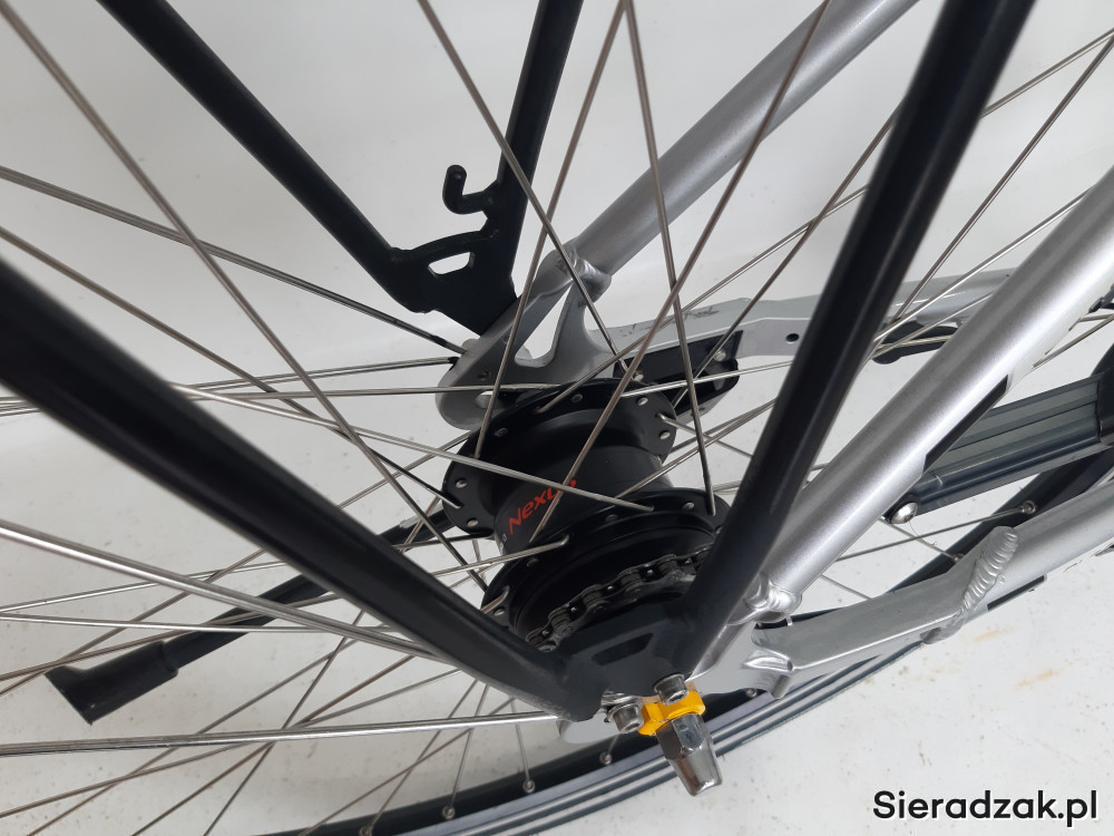 rama aluminium 19.5" 50cm,przerzutka shimano nexus 7-biegowa,hamulce v-brake shimano,siodło z amortyzowaną sztycą,wspornik kierownicy unit regulowany,dynamo shimano w przednim kole,oświetlenie trelock,opony schwalbe energizer,amortyzator sr suntour 012 series.stan techniczny i wizualny bardzo dobry.