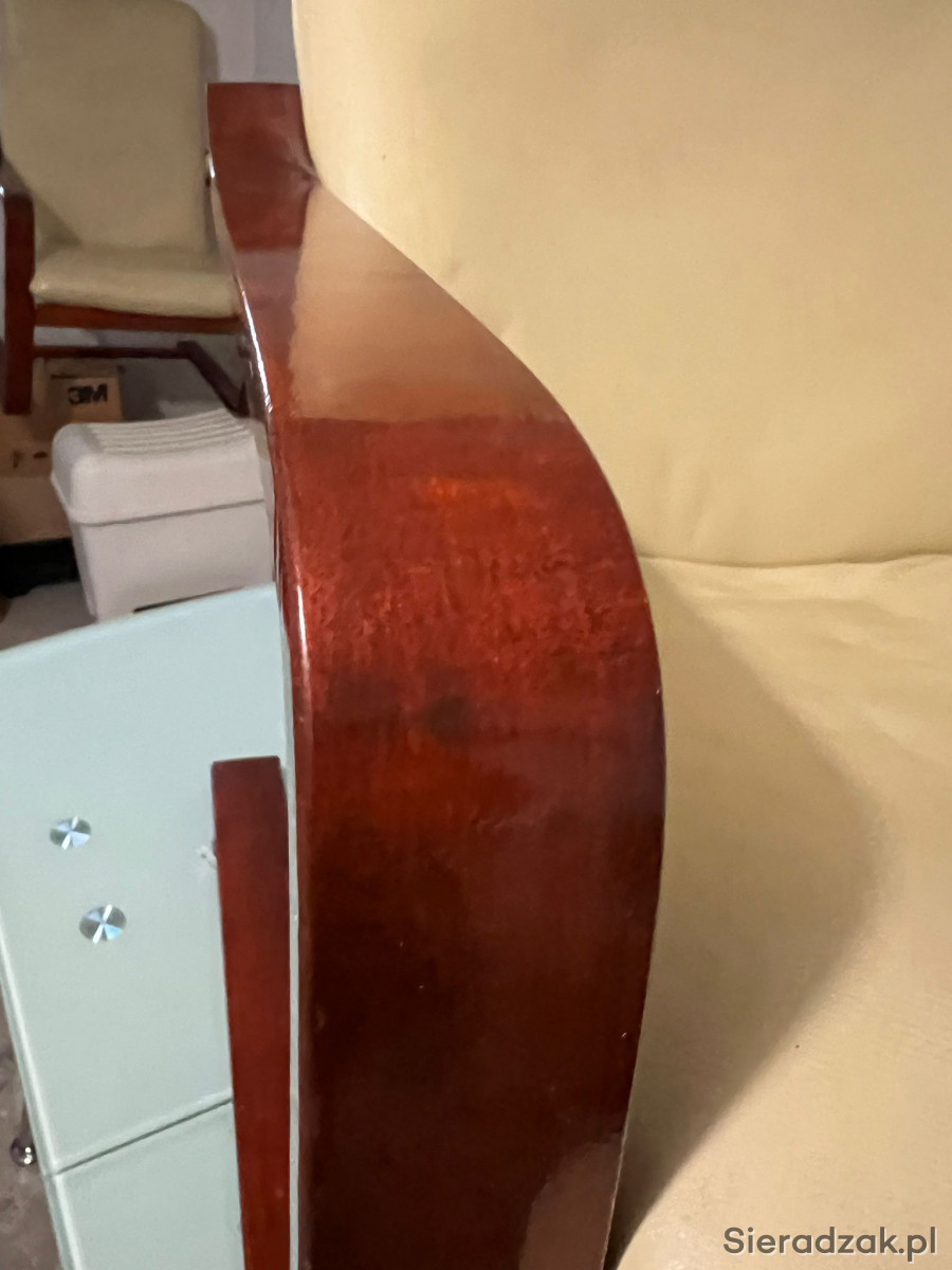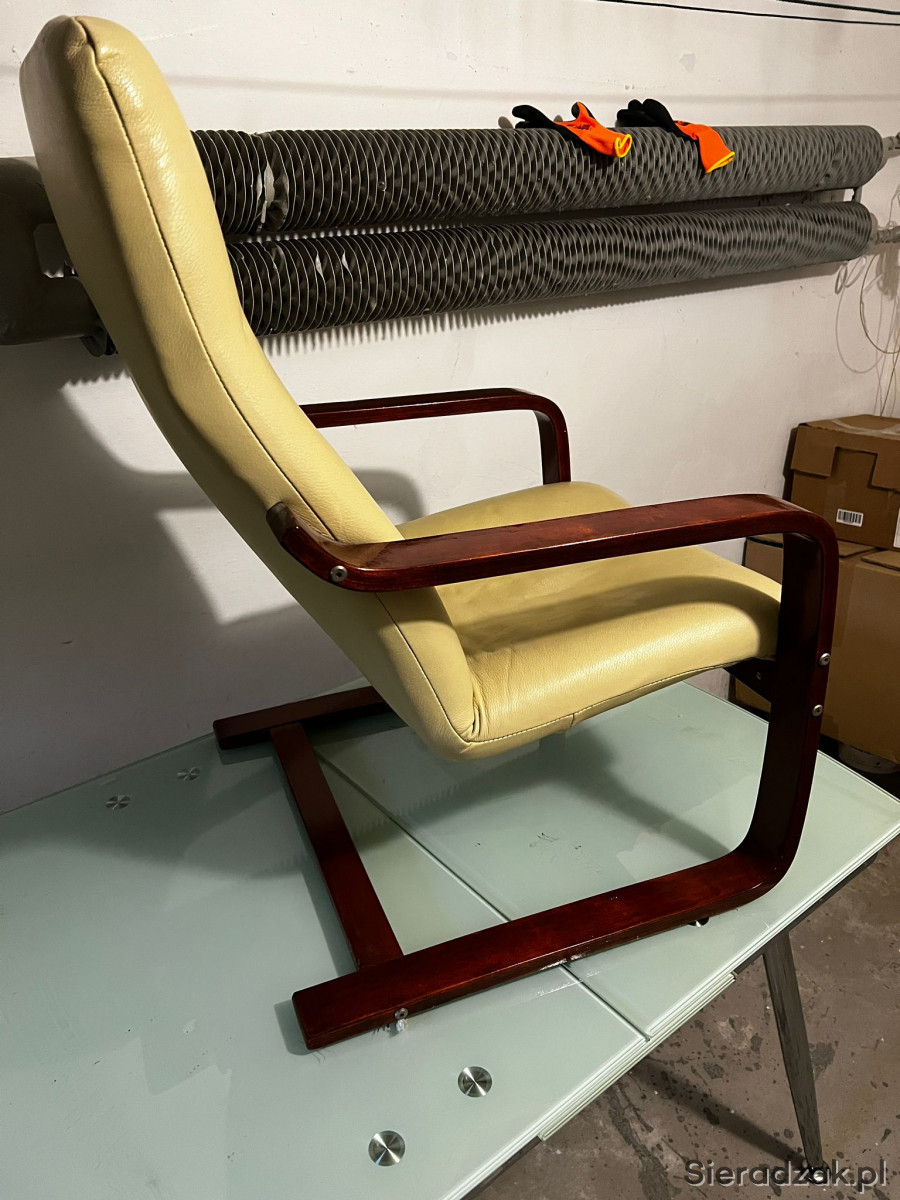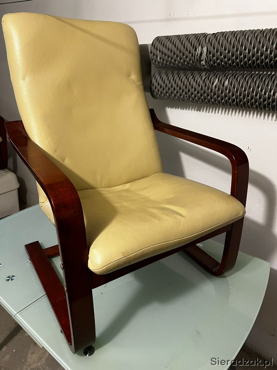 Do sprzedania dwa fotele. Całe siedziaska ze skóry, stelaż w kolorze machoń, z połyskiem.