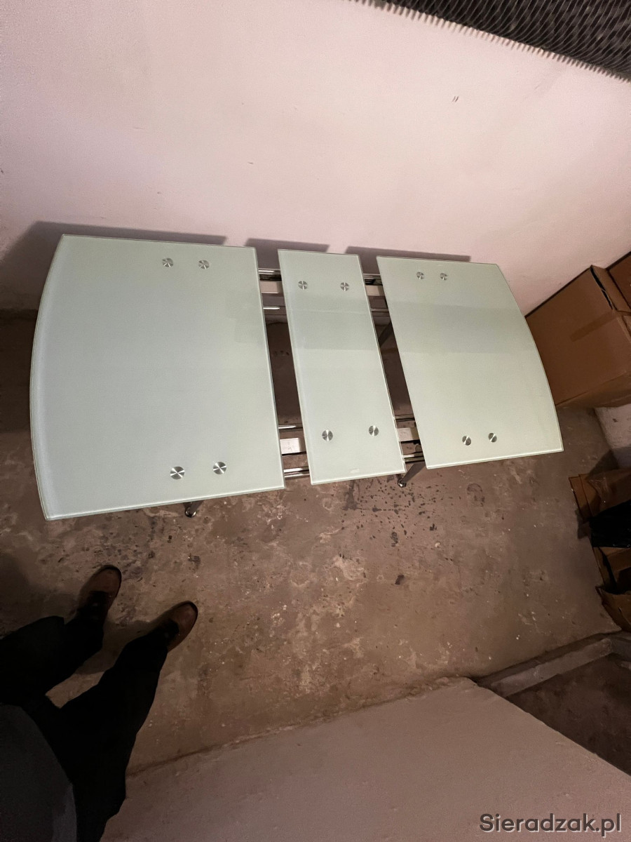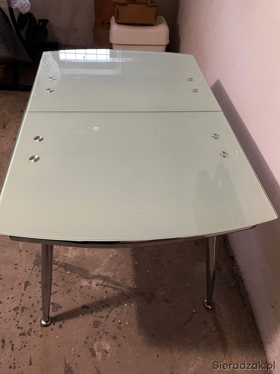 Do sprzedania szklany stół, rozkładany. Wymiary, złożony: 120 cm X 80cm, po rozłaożeniu: 150cm x 80cm. Wysokość 76cm.
