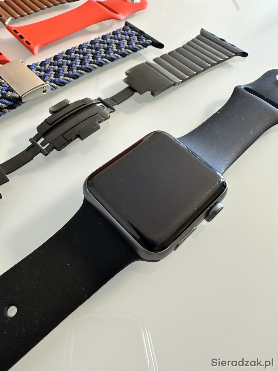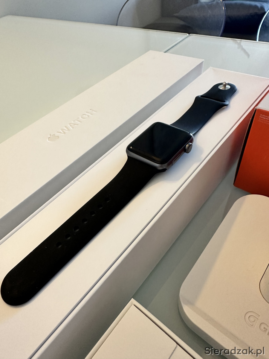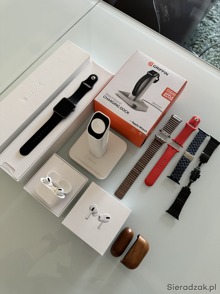Witam. Sprzedam Apple Watch series 2 z wbudowanym GPS. Koperta 42 mm w kolorze Space Grey. Zegarek w pełni sprawny wraz z całym zestawem widocznym na zdjęciach. Na zegarku sa mało widoczne slady uzytkowania. Dodatkowo gratis dołączam 4 paski, stacje ładującą oraz słuchawki AirPods Pro 1 z drewnianym etui. (słuchawki szumią podczas rozmow telefonicznych) odtwarzanie muzyki działa normalnie. W razie pytań proszę o kontakt 501 823 653