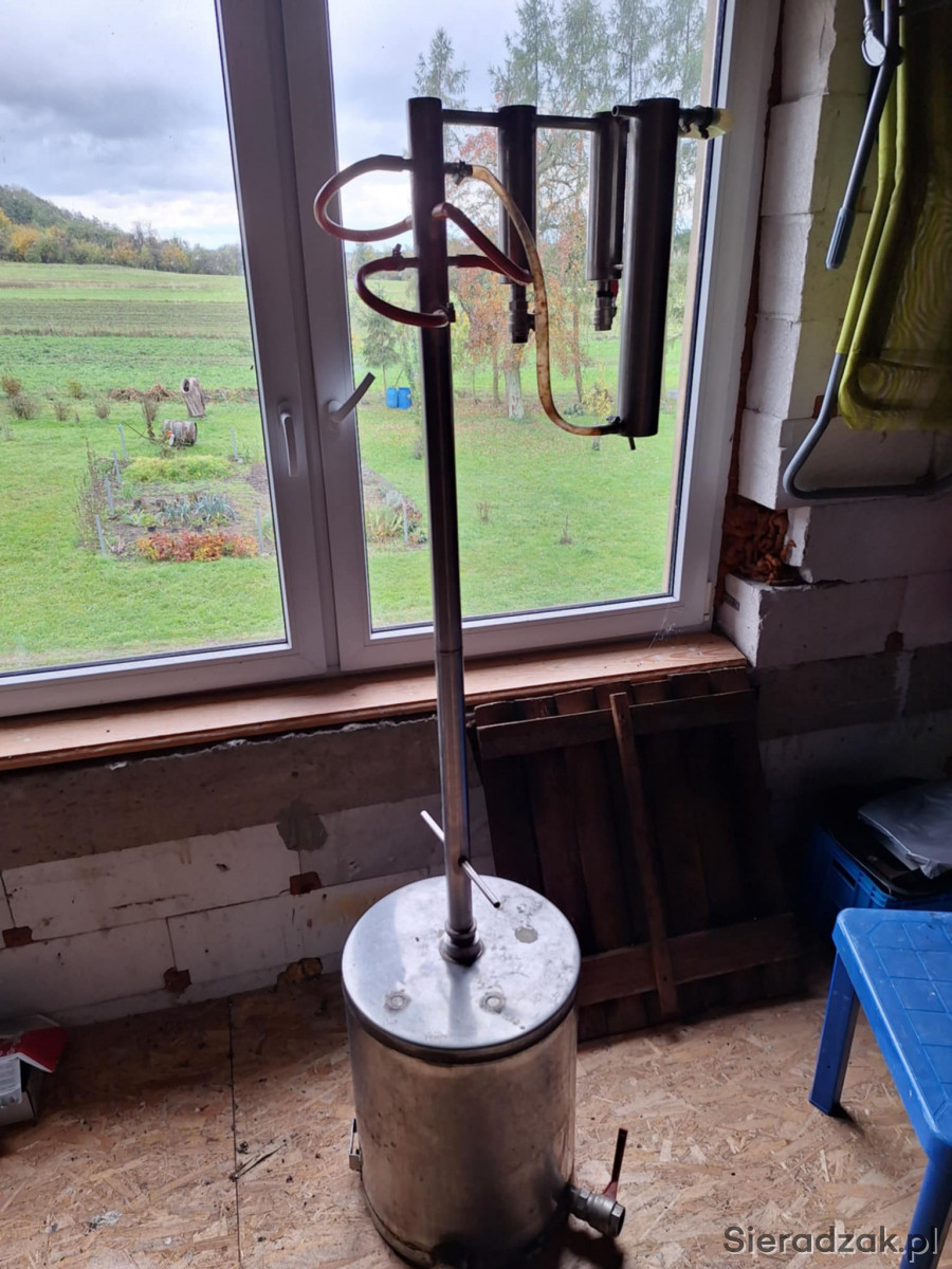 Sprzedam aparaturę do produkcji soku z gumijagód, wysokość kolumny 120cm, zbiornik 50L, zasilany grzałką 2000W, dodatkowo możliwość przełożenia kolumny do drugiego zbiornika 50L za dopłatą, destylator z pokrywą, kolumna 2 odstojniki, palce wodne, chłodnica, całość wykonana z blachy kwasowej. Kontakt pod tel 782-843-778