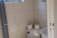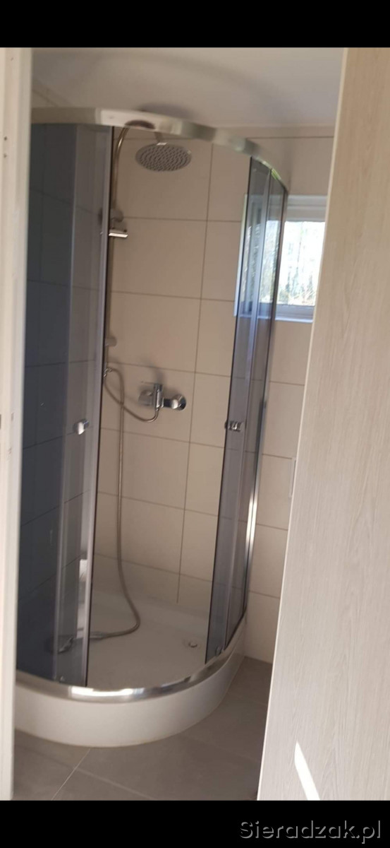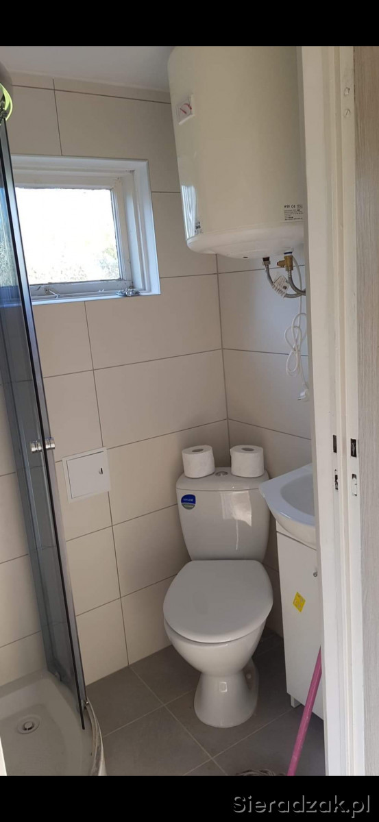 Łazienka – z prysznicem, umywalką i toaletą; zainstalowany bojler elektryczny zapewnia ciepłą wodę.