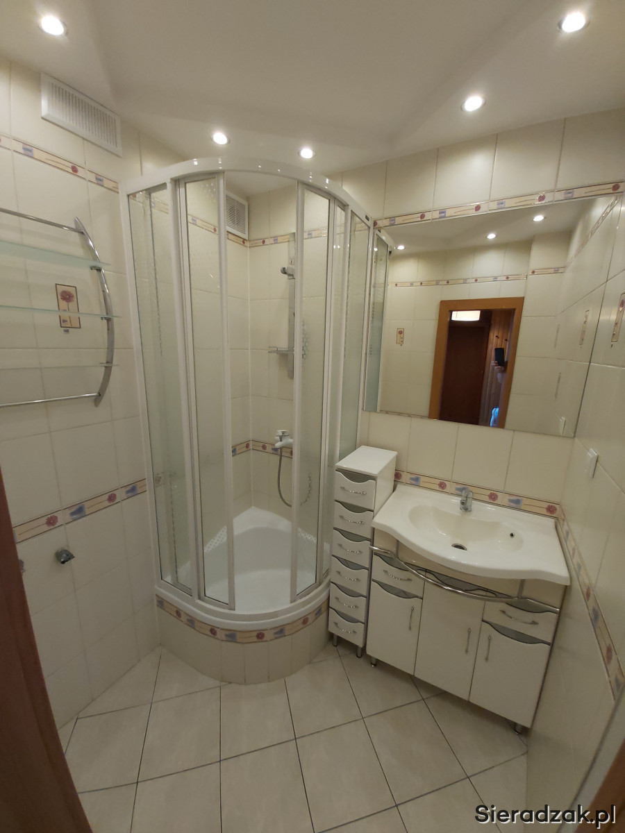 Do wynajęcia widoczne na załączonych zdjęciach mieszkanie składające się z 3 ustawnych pokoi, kuchni, łazienki, oddzielnego WC oraz balkonu o łącznej powierzchni prawie 50m2 znajdujące się w ścisłym centrum Sieradza – al. Pokoju. Lokalizacja zapewnia doskonały dostęp w promieniu kilkudziesięciu / kilkuset metrów do marketów (Sedal, Biedronka, Lidl), lokalnego ryneczku, placówek bankowych, przychodni, placówek oświaty, zakładów kosmetycznych i fryzjerskich, restauracji, dworca PKS, postojów taxi, galerii, sklepów Żabka, sklepów spożywczych i innych punktów handlowo-usługowych. Dodatkowym atutem mieszkania jest bezpośrednie sąsiedztwo z parkiem, licznymi placami zabaw a także licznymi miejscami postojowymi dla samochodów. Do mieszkania przynależy piwnica a także zamykany schowek na półpiętrze. Budynek posiada windę, która zapewnia komfortowy dostęp do mieszkania, jest ocieplony, zaopatrzony w ciepłą wodę i ogrzewanie bezpośrednio z PEC-u (Przedsiębiorstwo Energetyki Cieplnej), dostęp do budynku zabezpieczony jest domofonem. Mieszkanie czyste i zadbane, gotowe do wynajęcia, ze względu na lokalizację bardzo ciche i komfortowe zapewniające dodatkowo niesamowity widok na panoramę miasta.