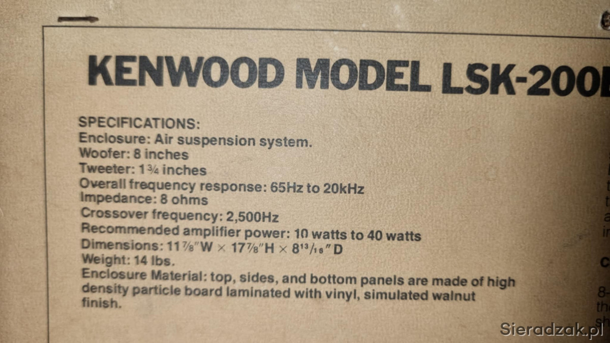 Kolumny Kenwood LSK-200 B 2x40W 8ohm 90dB skuteczności piękny dźwięk pod lampę. Made in Japan!!!