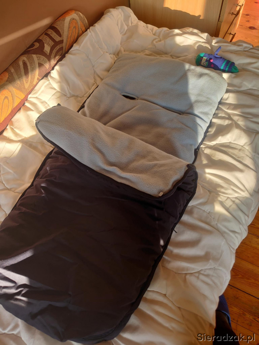 sprzedam gruby, bardzo ciepły śpiworek do wózka lub na sanki. zapinany na zamek z każdej strony co ułatwia odpinanie i zapinanie.