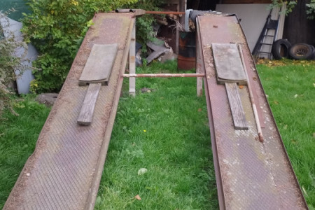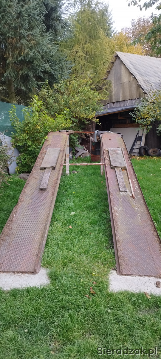 Witam , posiadam na sprzedaż najazd samochodowy. Bardzo solidna konstrukcja, gruba blacha.Długość całkowita to 8.2m , długość samego najazdu 4.7m a długość platformy 3.7m .