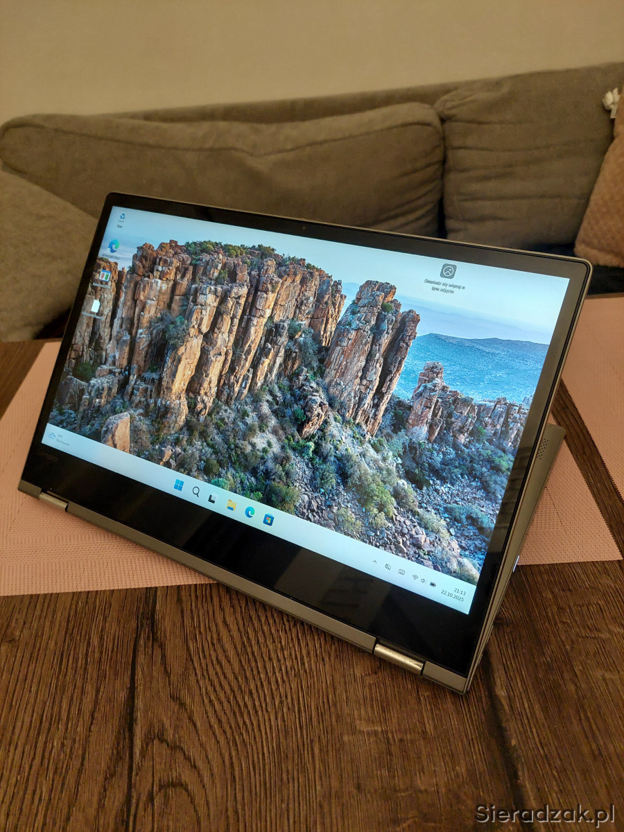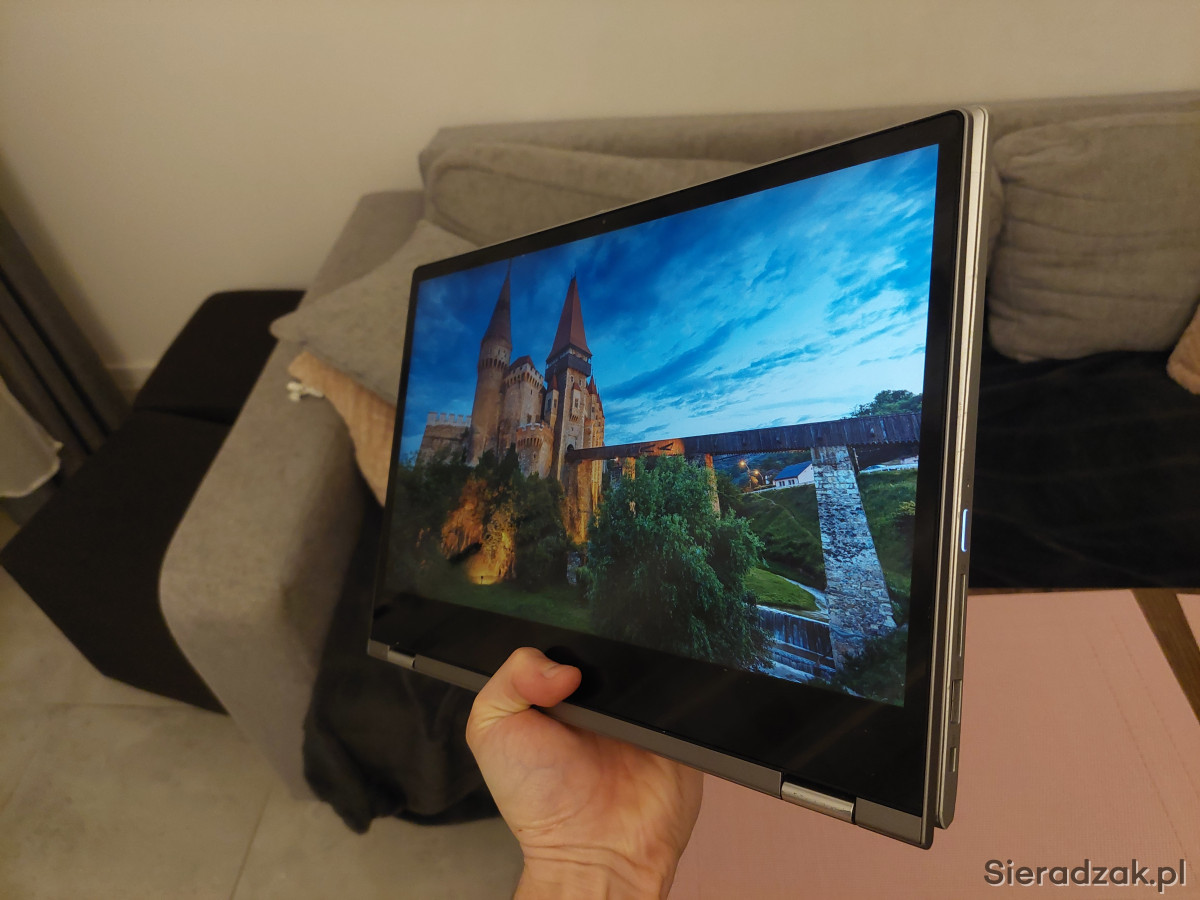 Na sprzedaż posiadam laptopa 14 cali Lenovo Yoga 530 360 stopni, jest to laptop typu 2 w 1, ponieważ posiada dotykowy ekran obsługiwany palcem jak w telefonie a ten ekran możemy jeszcze złożyć na płasko tak że robi nam się z laptopa tablet.