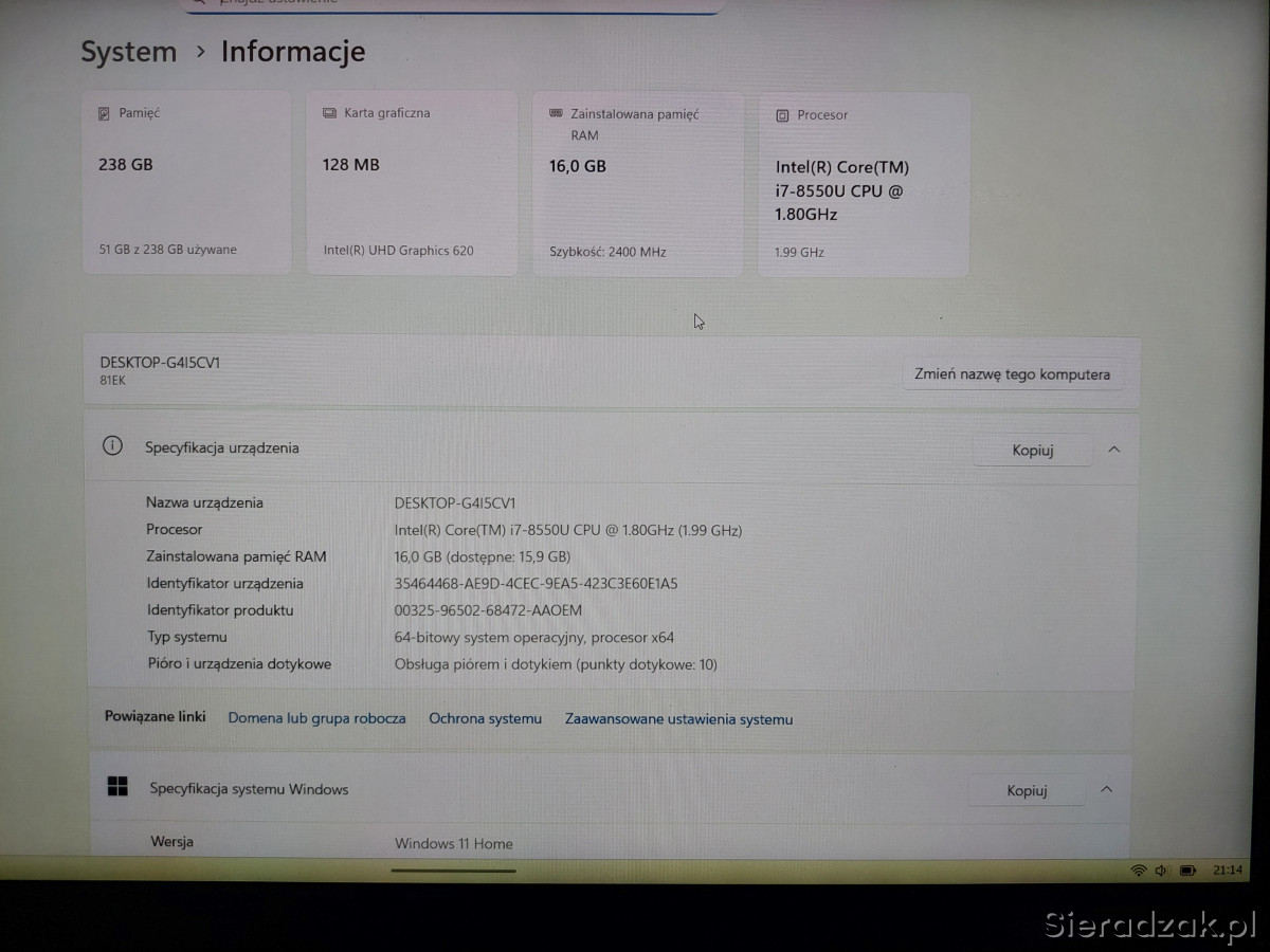 Nie tego szukasz? Przejrzyj inne oferty z tej kategorii (Telefony i Komputery › Laptopy i podzespoły). Możesz też zawsze przejść na stronę główną lub skorzystać z wyszukiwarki. ⊗