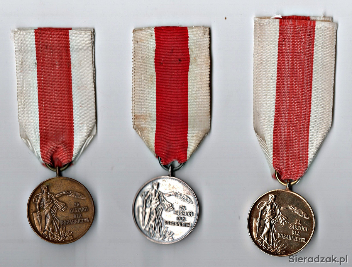 Komplet 3 medali:"Za zasługi dla OSP"- złoty, srebrny i brązowy.
