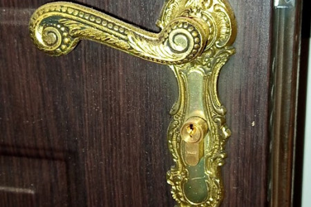 Do sprzedania mosiężny zestaw retro klamka wraz z górnym zamkiem.