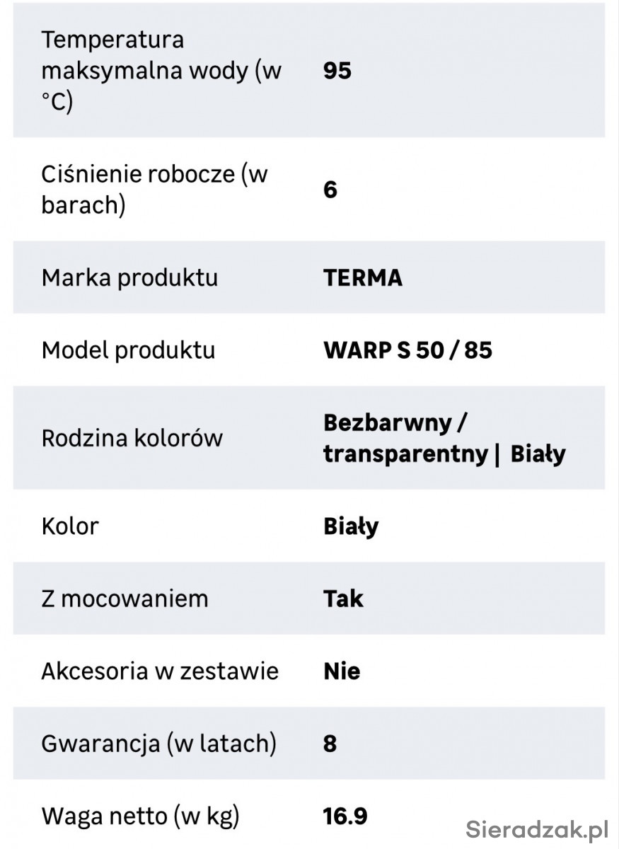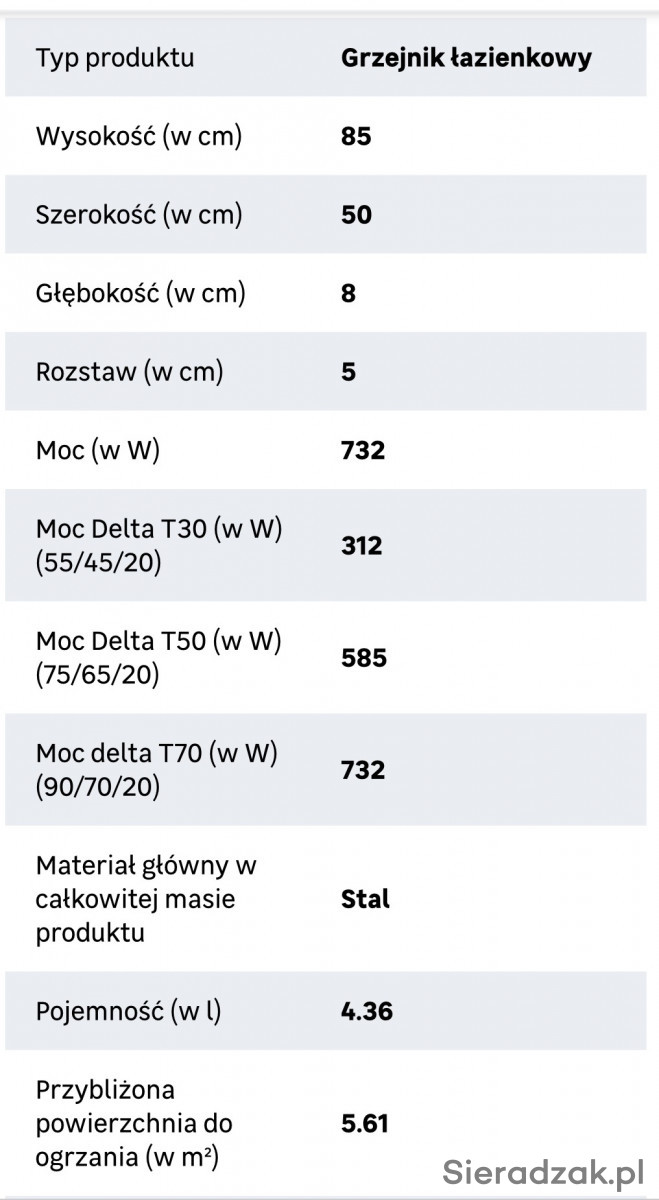Dzień Dobry sprzedam Grzejnik WARP S 85x50 cm Biały D 585W Roz 5cm 6 Bar TERMA. Grzejnik jest nowy, nieużywany. Został zamontowany i napełniony wodą ale z uwagi na zmianę koncepcji aranżacji wnętrza został zdemontowany. Zakupiony we wrześniu 2021 roku za cenę 594 zł, dziś dostępny w sprzedaży w cenie 868 zł. Wszystkie parametry podaje w zdjęciach zaciągniętych ze strony Leroy Merlin, gdzie został zakupiony. Z uwagi na brak oryginalnego opakowania jedynie odbiór osobisty.