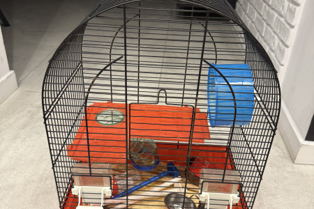 Mam do oddania klatkę. Miałem w niej zarówno papugi jak i chomika- stąd pomieszane wyposażenie :)