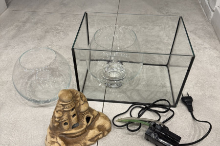 Oddam małe akwarium - ok 15-20 litrów (jest szczelne). Plus to co widać na zdjęciu.