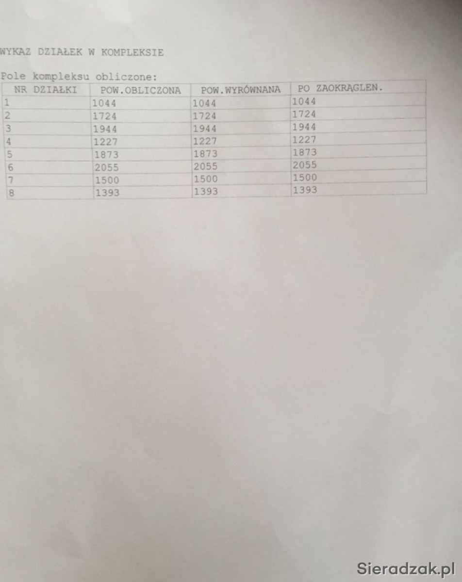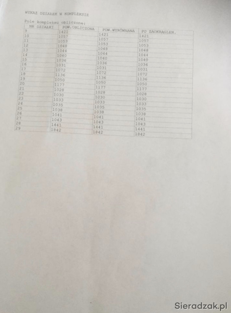 Powierzchnia działek: