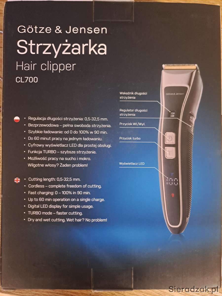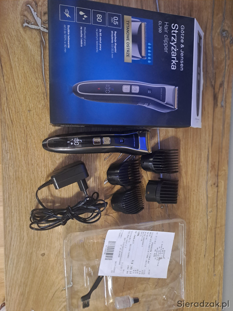 Maszynka do włosów Götze & Jensen CL700 .Doskonała jako narzędzie do precyzyjnego strzyżenia włosów. Wydajna i łatwa w obsłudze. Użyta dwa razy. Jeszcze na gwarancji. Zakupiona w Media ekspert