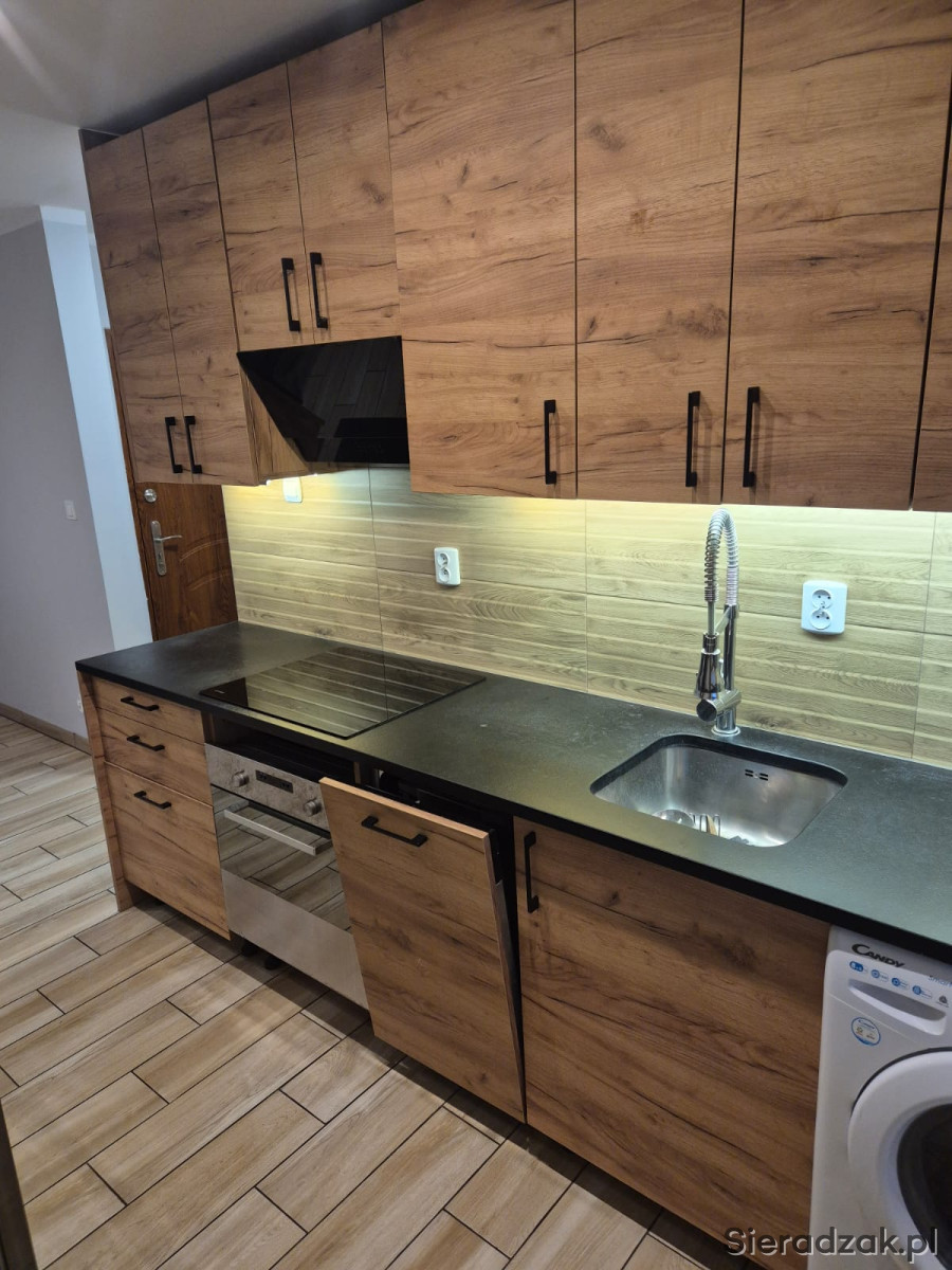 Na wyposażeniu mieszkania znajduje się: płyta indukcyjna , piekarnik , lodówko zamrażarka (pełny no frost),zmywarka, pralko-suszarka, wyposażenie pokoi jest kwestią umowną w zależności od potrzeb najemcy , w pokoju znajduje się łóżko 140x200.