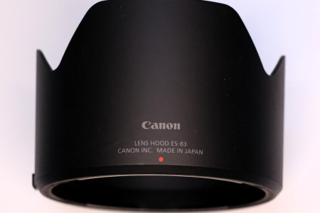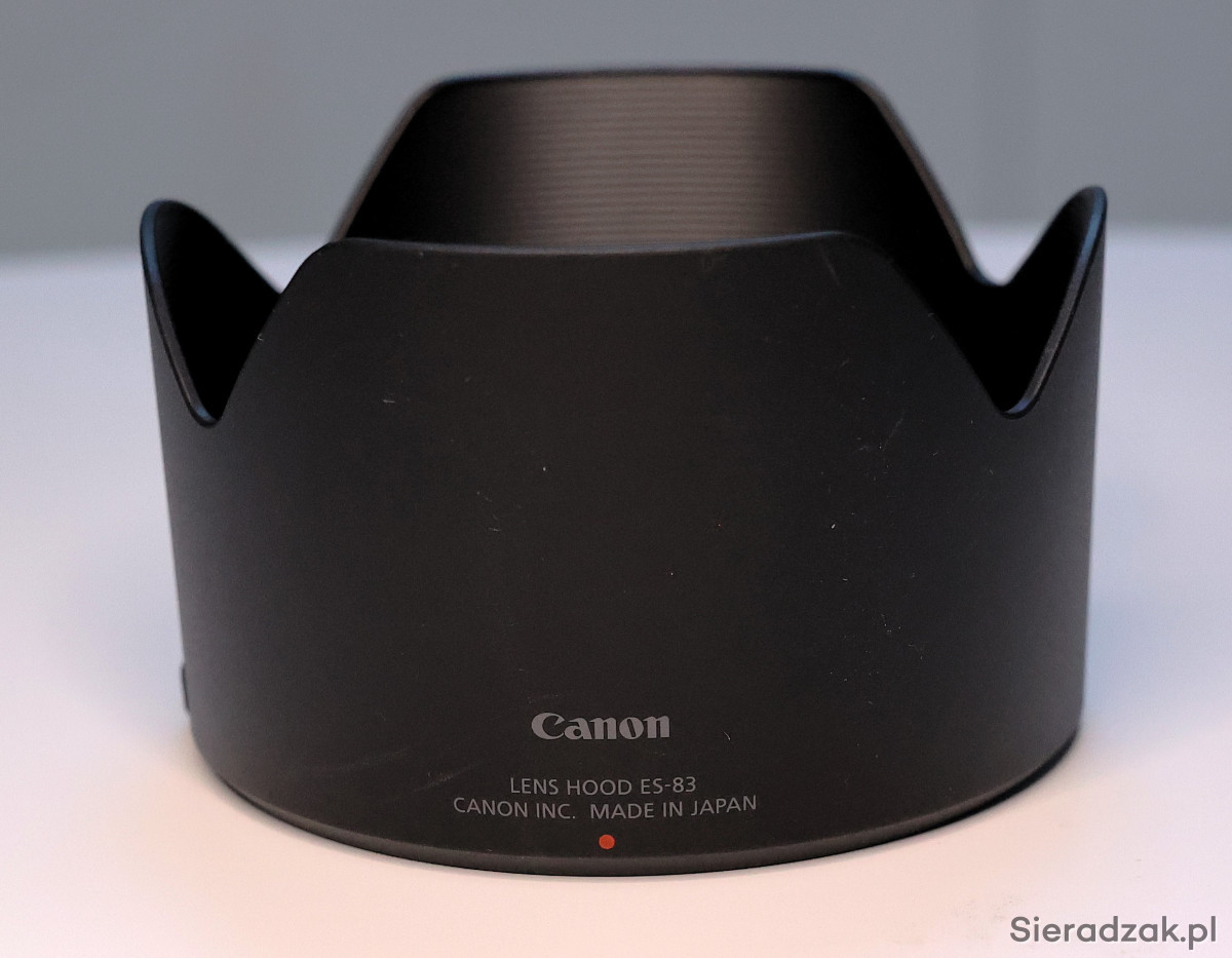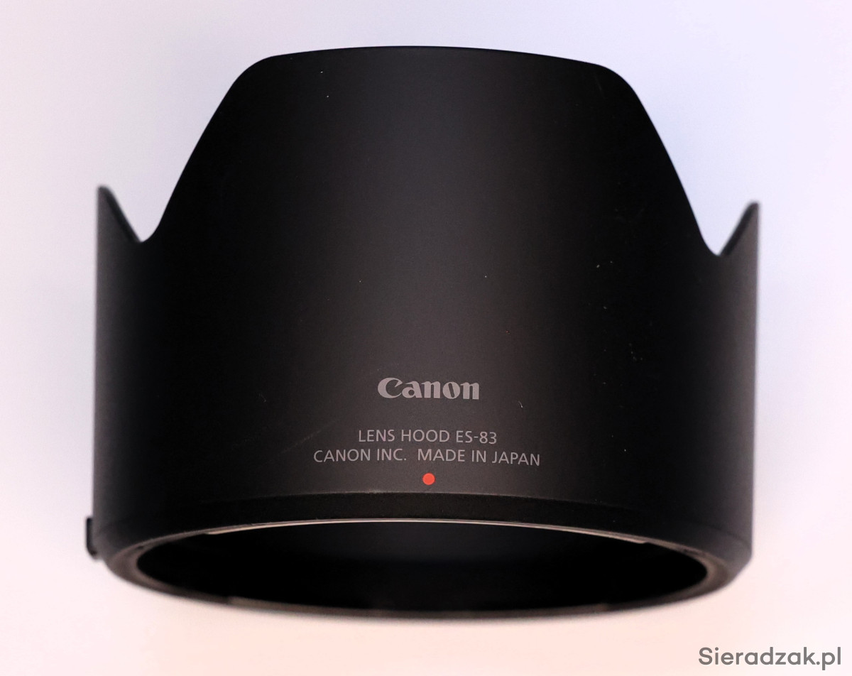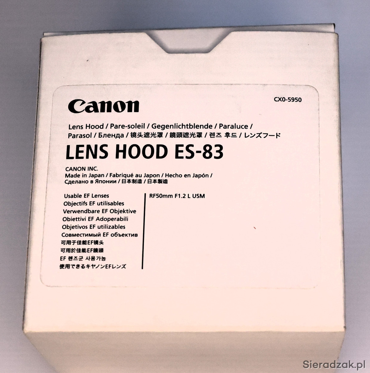 Nowa w pudełku, oryginalna osłona ES-83 Canona. Osłona przeciwsłoneczna dedykowana do obiektywu Canon RF 50mm f/1.2L USM.