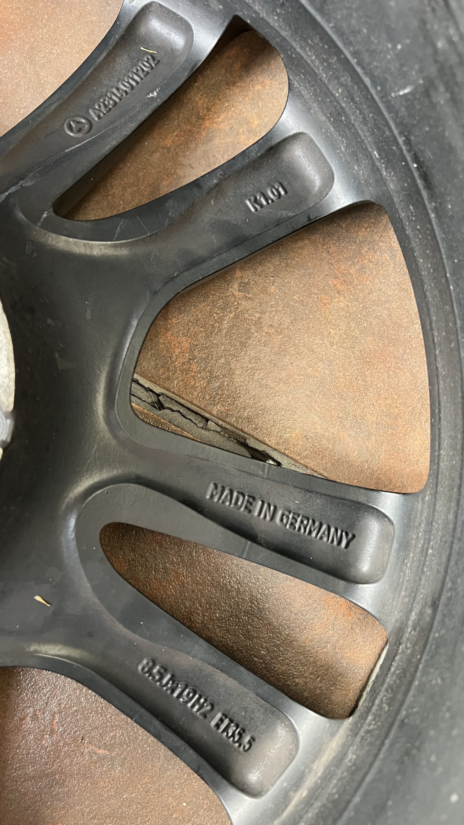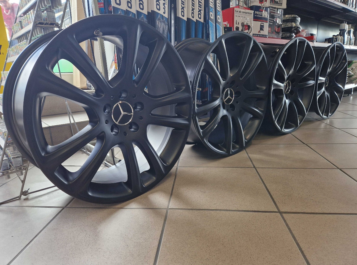 9,5Jx19H2 ET47,5 Nr A2314011302 i 8,5Jx19H2 ET 35,5 Nr A23114011202. Rozstaw śrub 5 x 112. U mnie jeździły 2 sezony na W213. W komplecie czujniki Schrader i zaślepki z logo MB.