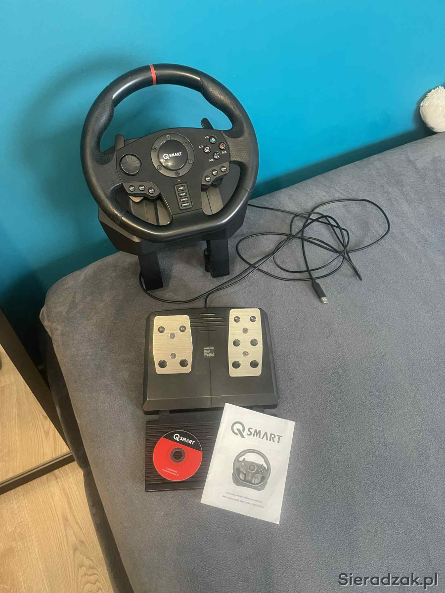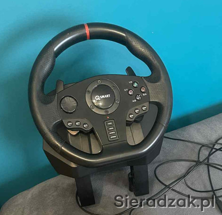 Kierownica qsmart gt900, oferuje 900 stopni skrętu, idealnie nadaje sie do gier typu: ets2; forza; asseto corsa.