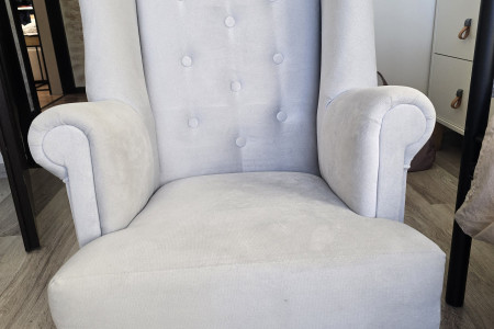 Sprzedam fotel uszak w bardzo dobrym stanie,do pokoju małej księżniczki, kolor szary, bardzo milutki materiał. Wymiary wysokość całkowita 83 cm, szerokość całkowita 53cm, wysokość do podłokietnika 53cm, głębokość siedziska 42cm. Serdecznie polecam.
