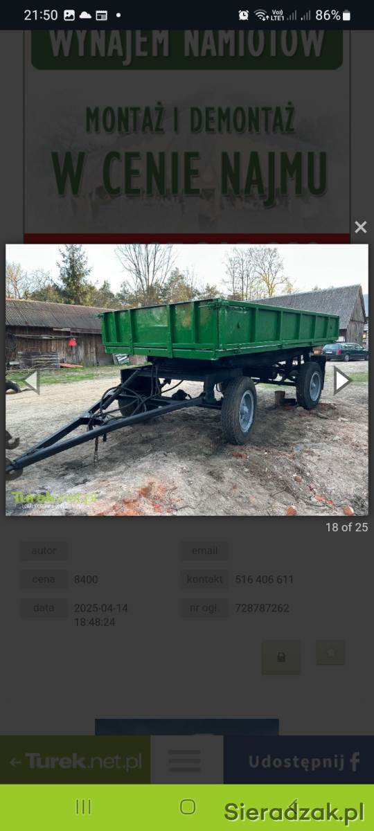 Nie tego szukasz? Przejrzyj inne oferty z tej kategorii (Motoryzacja › Maszyny rolnicze › Przyczepy rolnicze). Możesz też zawsze przejść na stronę główną lub skorzystać z wyszukiwarki. ⊗