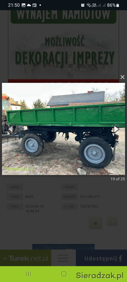 Sprzedam przyczepę rolnicze wywrotka na 3 strony, d47,zarejestrowana, opłacony.oc przegląd, więcej informacji pod numerem telefonu 516 406 611.