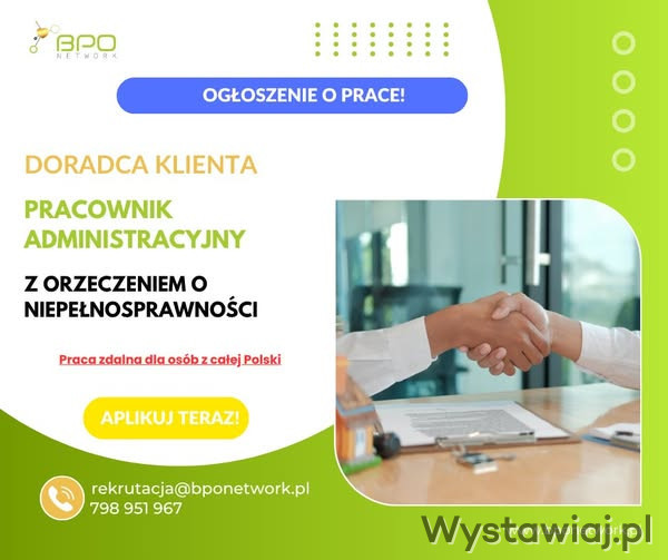 Doradca klienta - pracownik administracyjny (K/M) z orzeczeniem o niepełnosprawności (3/4 etatu)