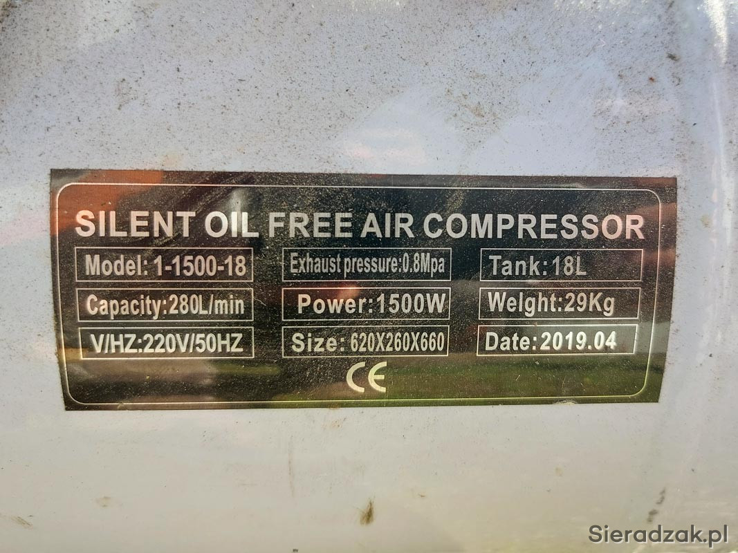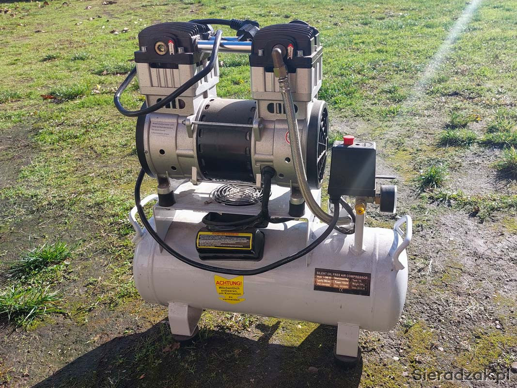 Sprzedam cichy kompresor dwutłokowy o mocy 1500 W i pojemności zbiornika 18 litrów.