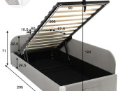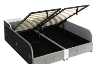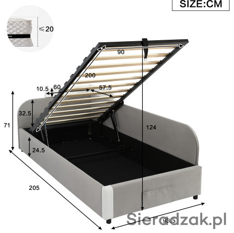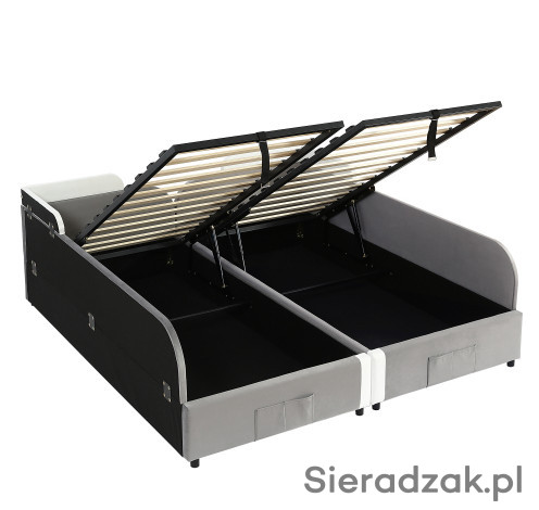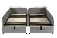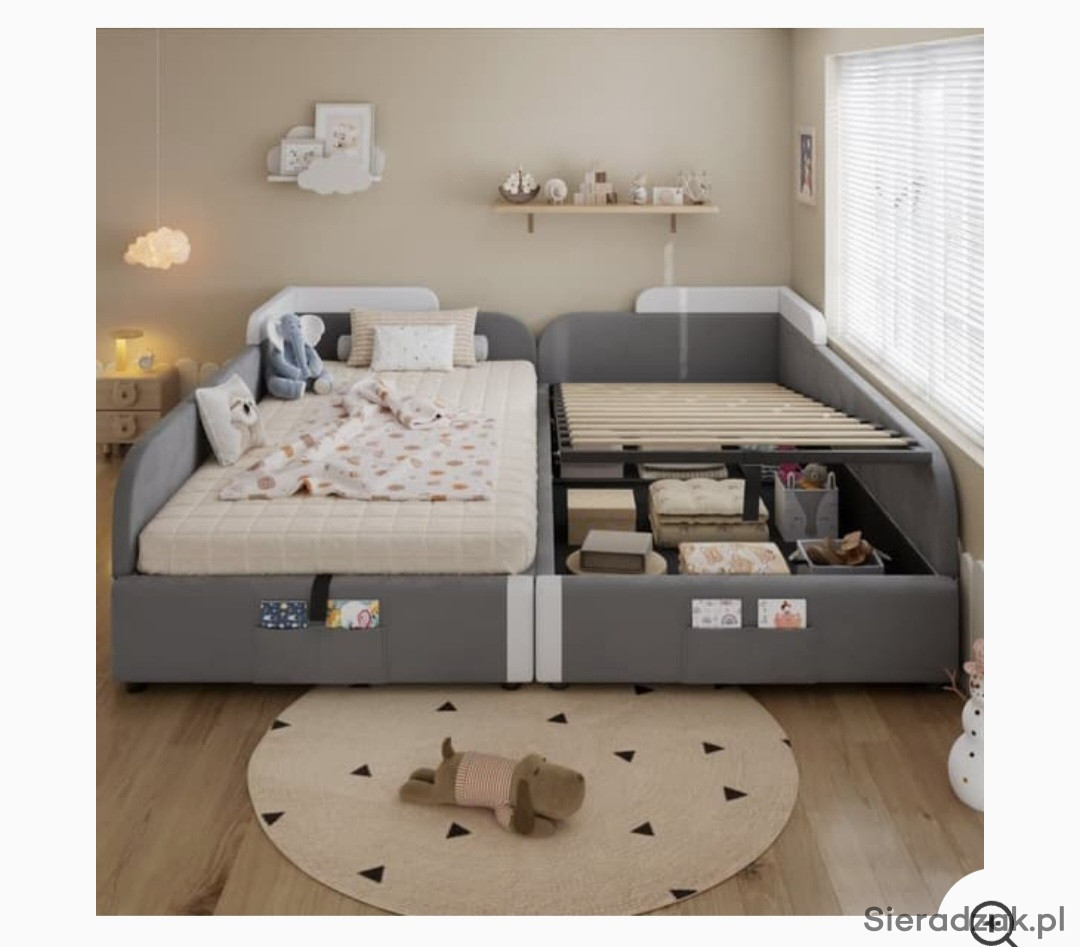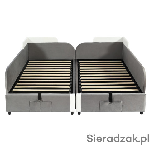 Tapicerowane łóżko dla dzieci – łączone 90×200 cm × 2, hydrauliczny schowek, podwyższone, miękkie krawędzie łóżka, schowek w dolnej części, kolor szary.