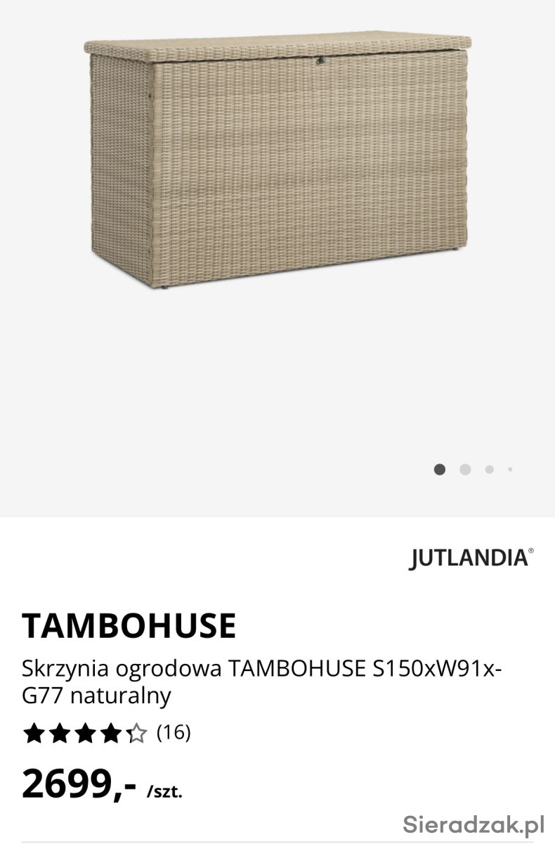 Wypoczynek ratanowy Ravendrup kupiony w tamtym roku skrzynia w tym roku . W sklepie Jysk .sprzedaję z powodu przeprowadzki. Zestaw Skrzynia ,2stoły ,5modułów wewnętrznych, 2 moduły narożne wszystkie poduszki i siedziska są .