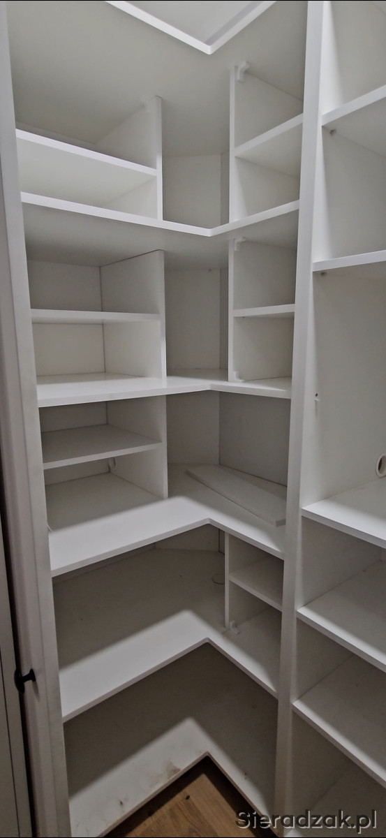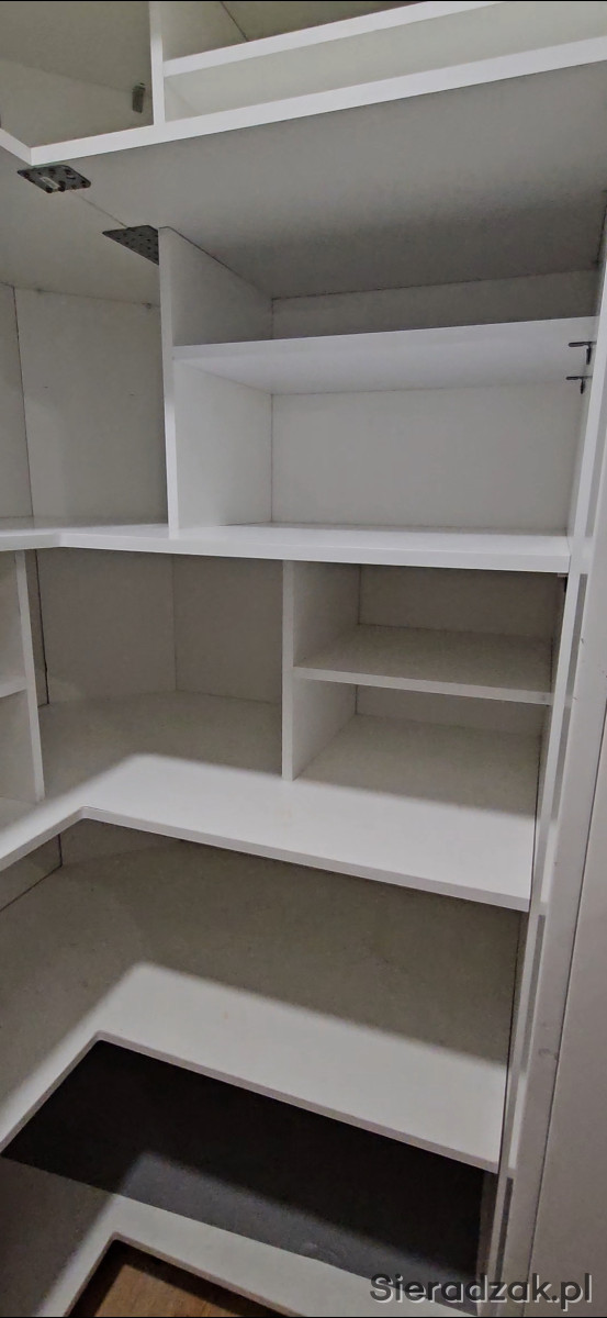 Sprzedam meble do zabudowy spiżarni lub garderoby w kształt litery "U".Składają się z dwóch narożnych regałów + jeden prosty,który znajduje się w środku.Posiadają wiele półek, które pozwalają na efektywne zagospodarowanie przestrzeni. Idealna do przechowywania produktów spożywczych, naczyń lub odzieży.