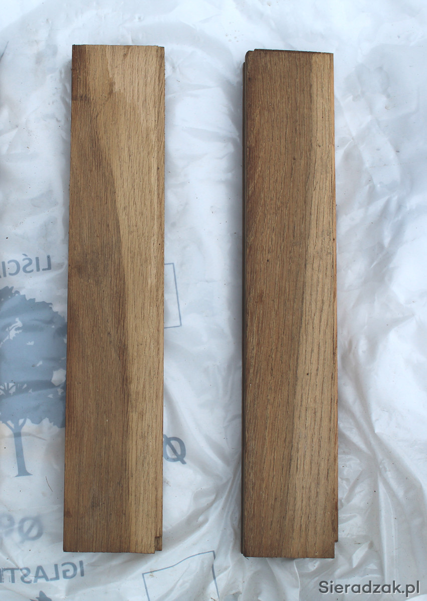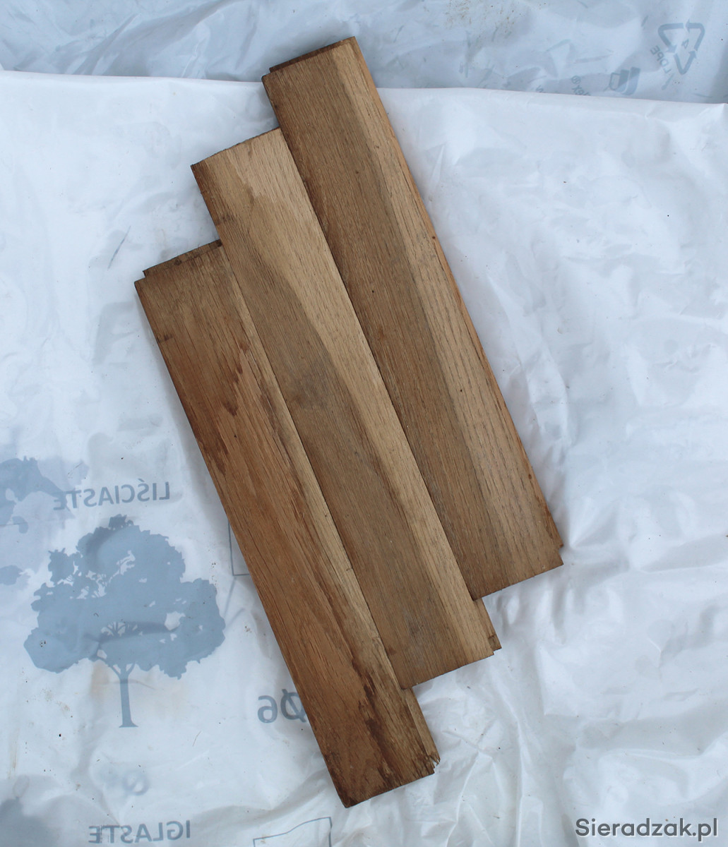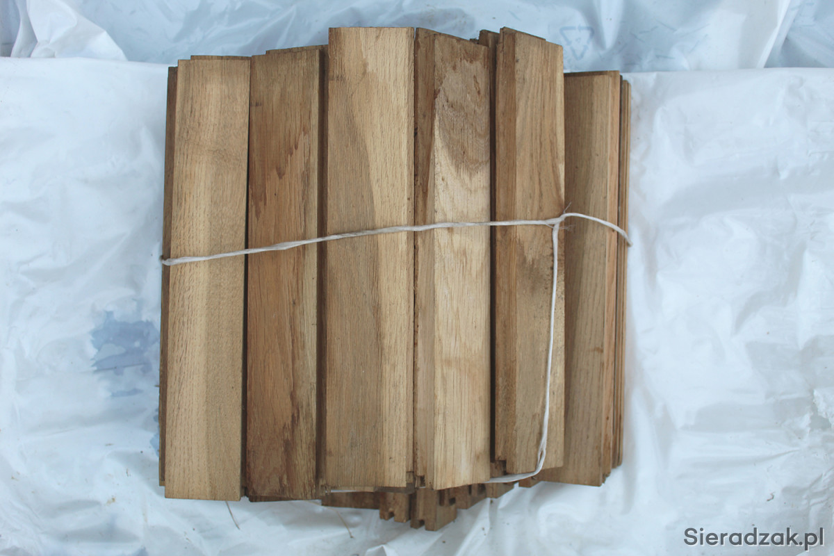 Sprzedam klepki dębowe z dawnego demontażu o wymiarach 30x5x2 cm, łączenie piuro-wpust, surowe, suche drewno.