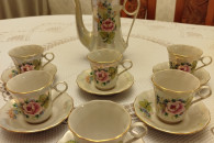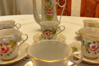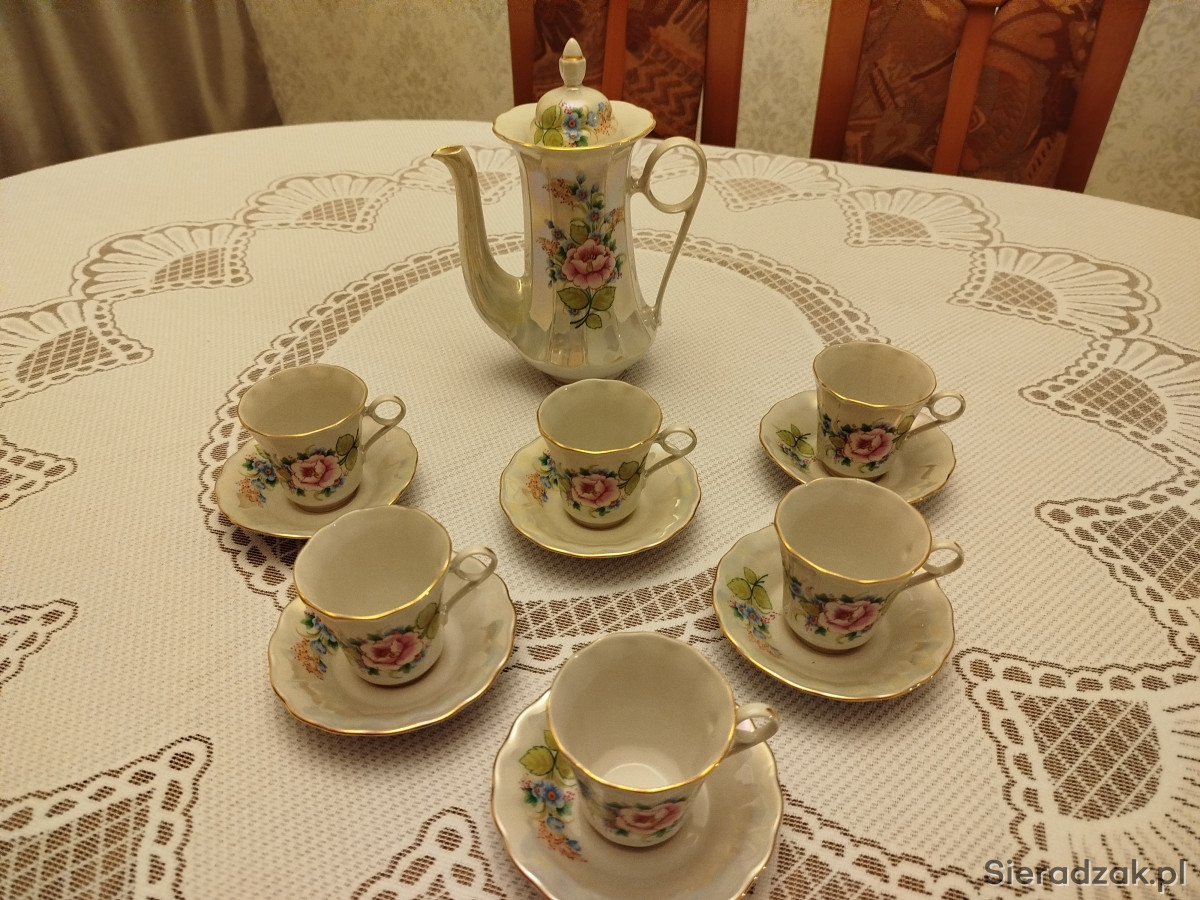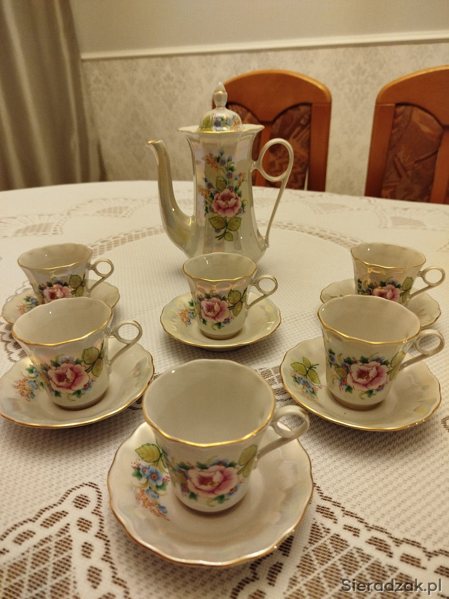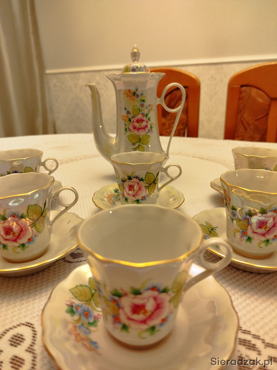 Do sprzedania piękny serwis kawowy. Masa perłowa ze złoceniami, opalizujący. Stan idealny, bez rys i przetarć. Produkcja: Fabryka Porcelany Korosteń.