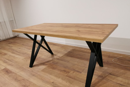 Witam Solidny, drewniany stół loftowy na metalowych nogach. Blat wykonany z okleiny dębu o wymiarach 160/80 cm. Stół doskonale sprawdzi się w nowoczesnym wnętrzu, nadając mu industrialnego charakteru.