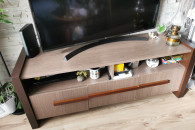 Stylowy kredens do salonu z dużym lustrem. Wykonany z wysokiej jakości materiałów, idealnie pasuje do nowoczesnego wnętrza. Posiada pojemne szafki, które pozwolą na przechowywanie różnych przedmiotów. Całość prezentuje się elegancko i funkcjonalnie.