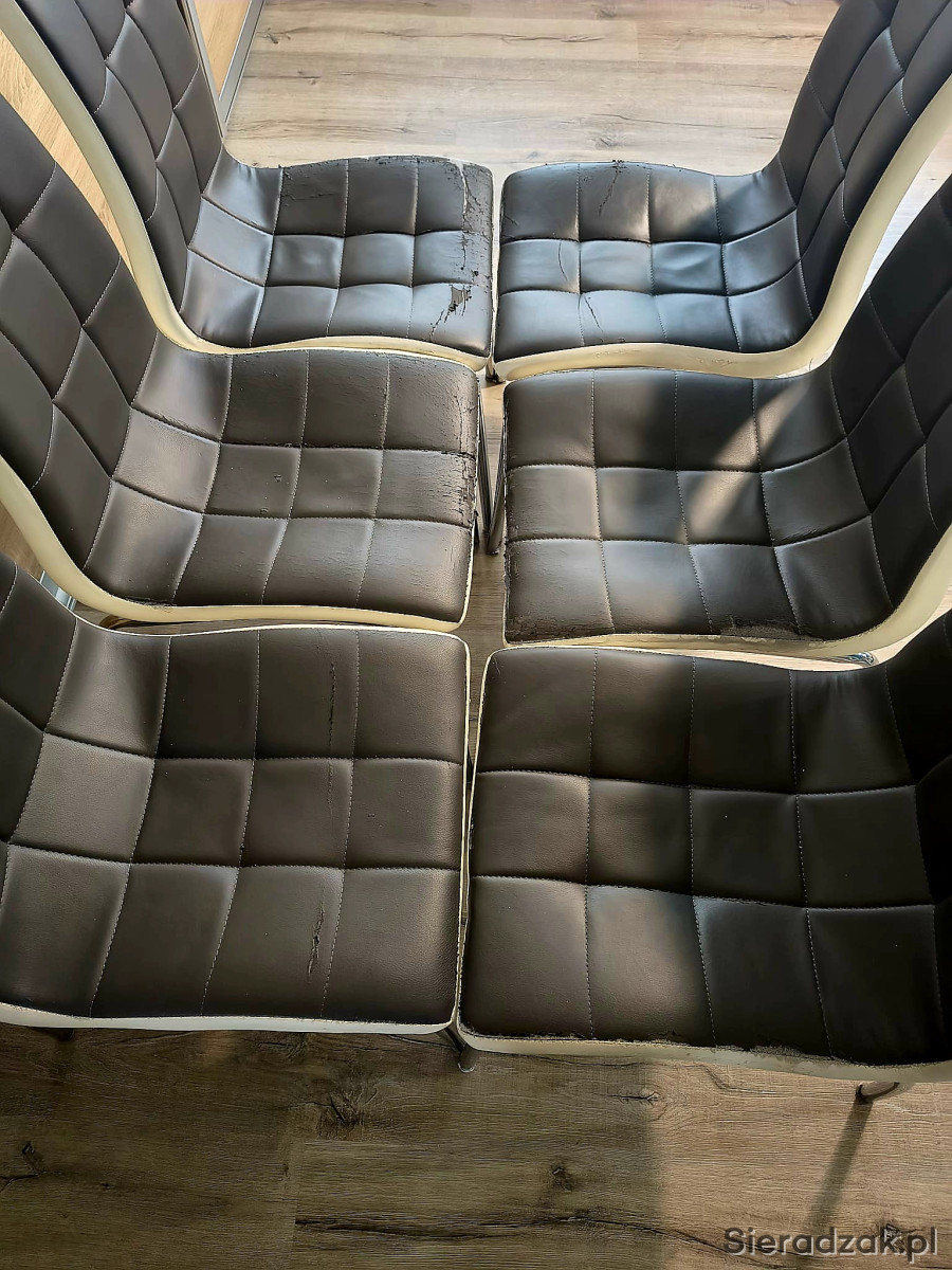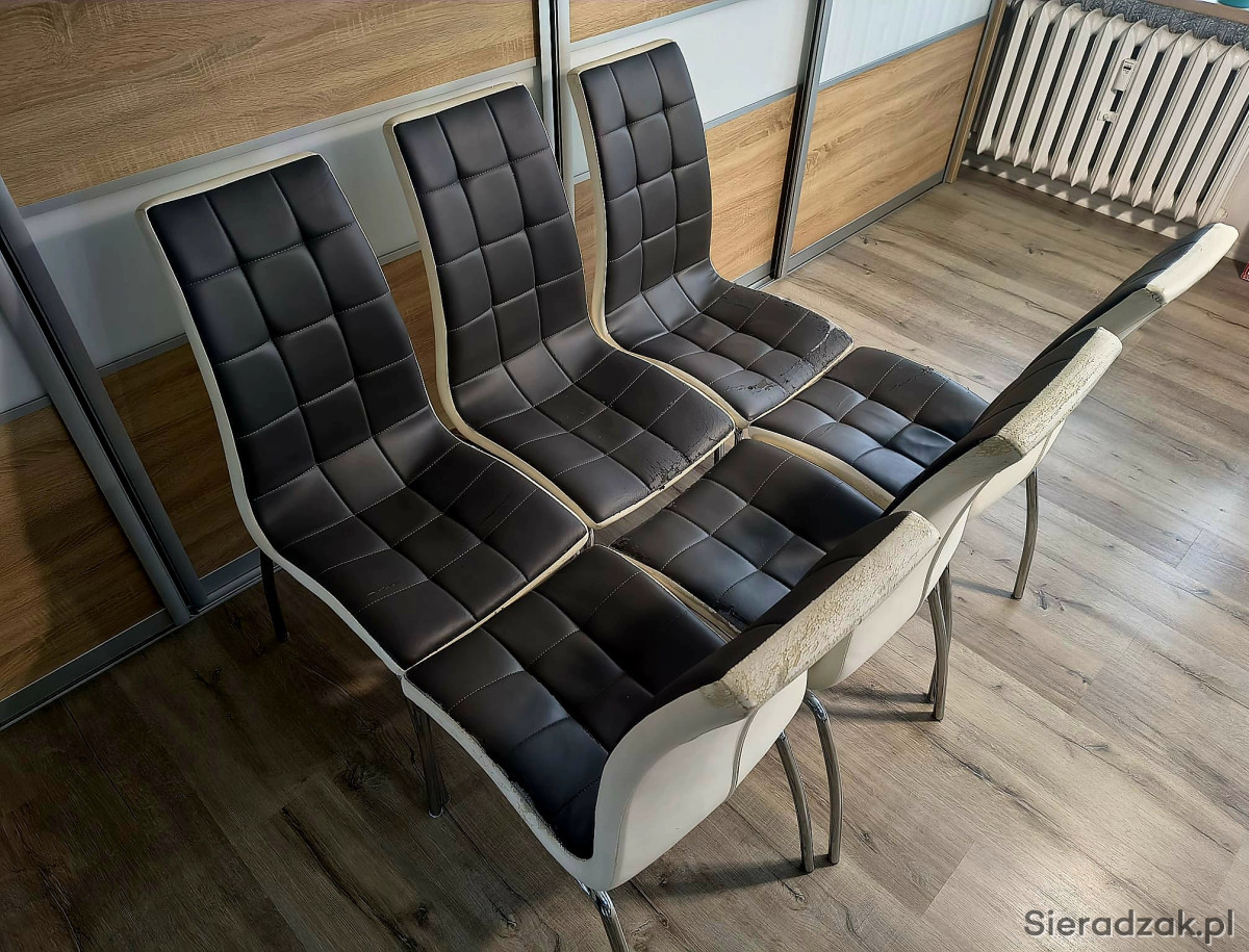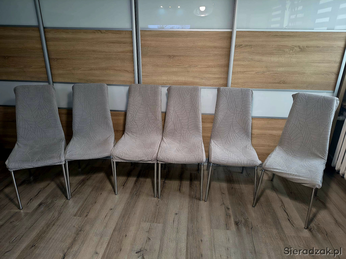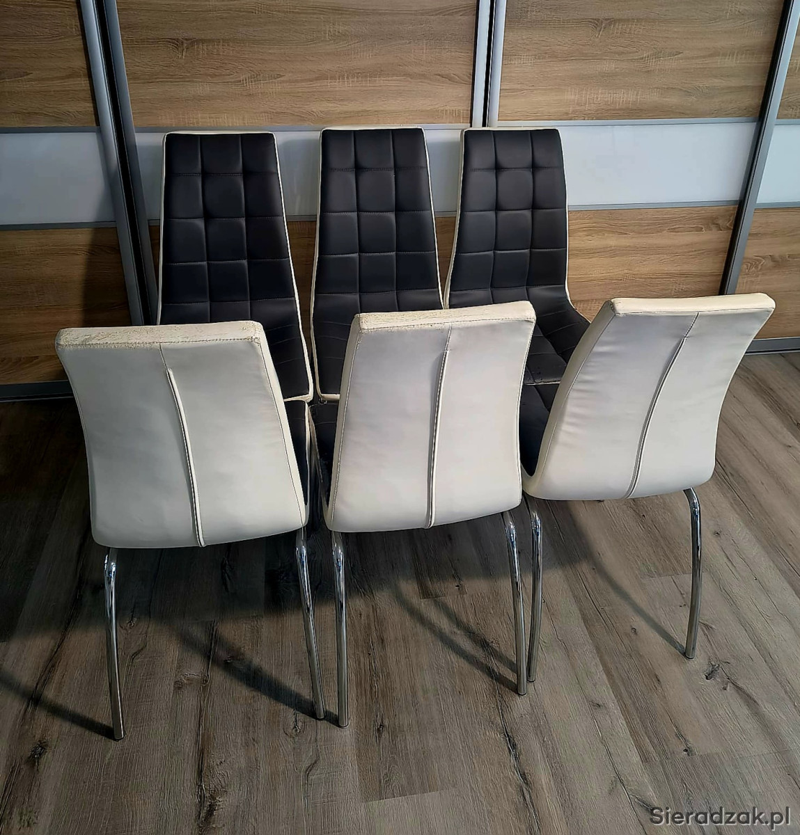 Krzesła 6szt. Szaro białe pikowane chromowane nogi. Stan jak na zdjęciach Pokrowce GRATIS