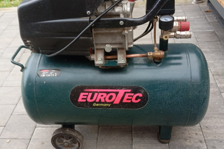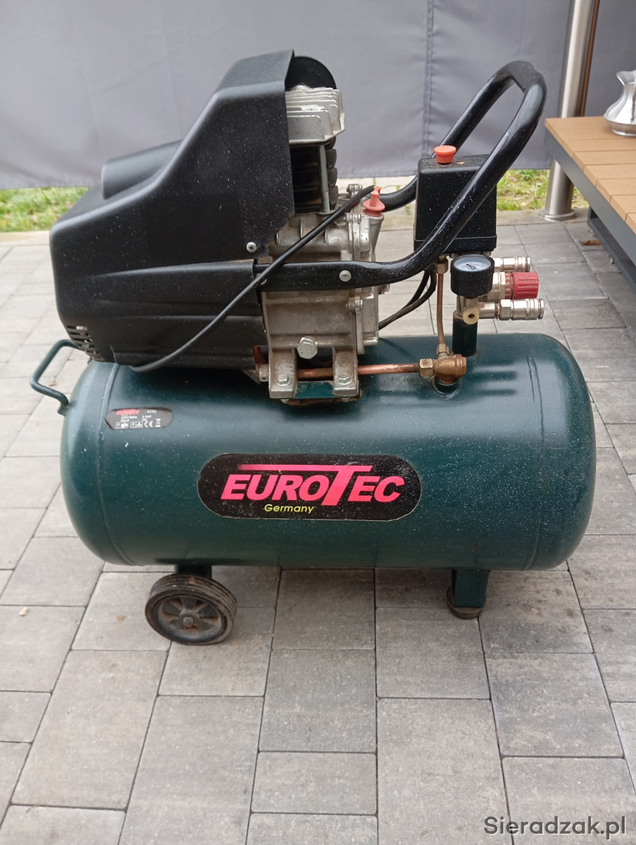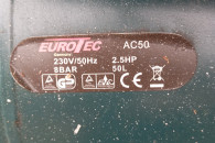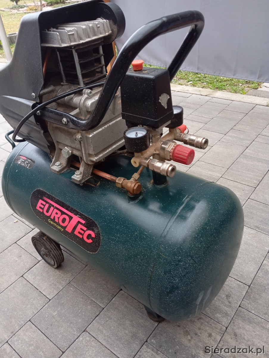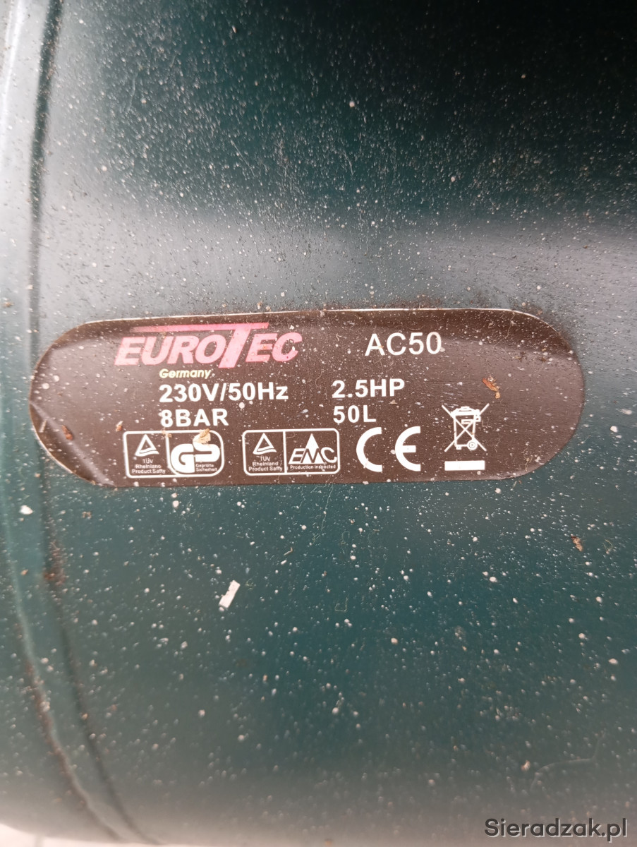 Używana sprężarka o mocy 2,5 KM, model AC50 firmy Eurotec. Urządzenie przystosowane do napięcia 230V/50Hz i ciśnienia roboczego 8 bar. Sprężarka używana była tylko kilka razy, jest sprawna i w dobrym stanie technicznym, gotowa do użytku. POLECAM