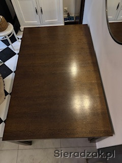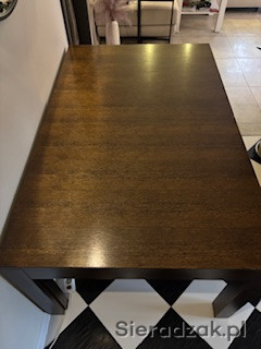stół o wymiarach 160cm x 100 cm z możliwością przedłużenia rozmiaru 360 cm x 100 cm w zestawie znajduje się sześć ( 6 ) krzeseł. Mebel używany nie zniszczony. kolor stołu i krzeseł widoczna na zdjęciach.