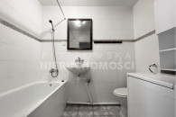 - Łazienka z wanną, pralką i miejscem do przechowywania.