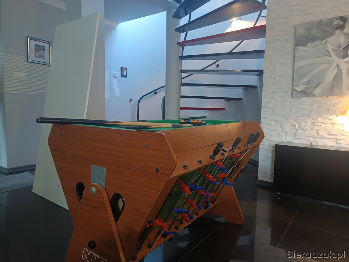 Nie ma możliwości, że stół szybko się znudzi. Dzięki mechanizmowi obrotowemu, w łatwy sposób można przekręcić planszę do gry na nową. Wystarczy odkręcić obie śruby z boku stołu i gotowe! po uzgodnieniu możliwość transportu.