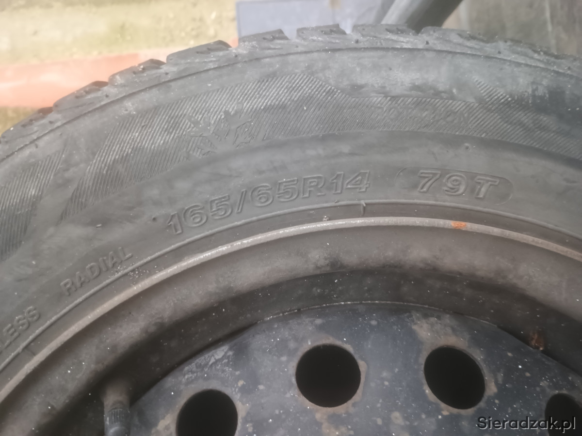 Koła zimowe 165/65r14 na stalówkach, nie wiem ile mają za sobą sezonów, przyszły razem z yarisem 1 generacji