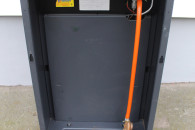 Grzejnik na sprawnych kółkach, mobilny, można łatwo i szybko ustawić go w dowolnym miejscu w pomieszczeniu. Farelka posiada z tyłu wysuwaną platformę (widoczną na zdjęciu), aby mogła zmieścić się standardowa butla gazu. Dodatkowo do piecyka dołączam oryginalną obudowę/osłonę metalową na butlę.