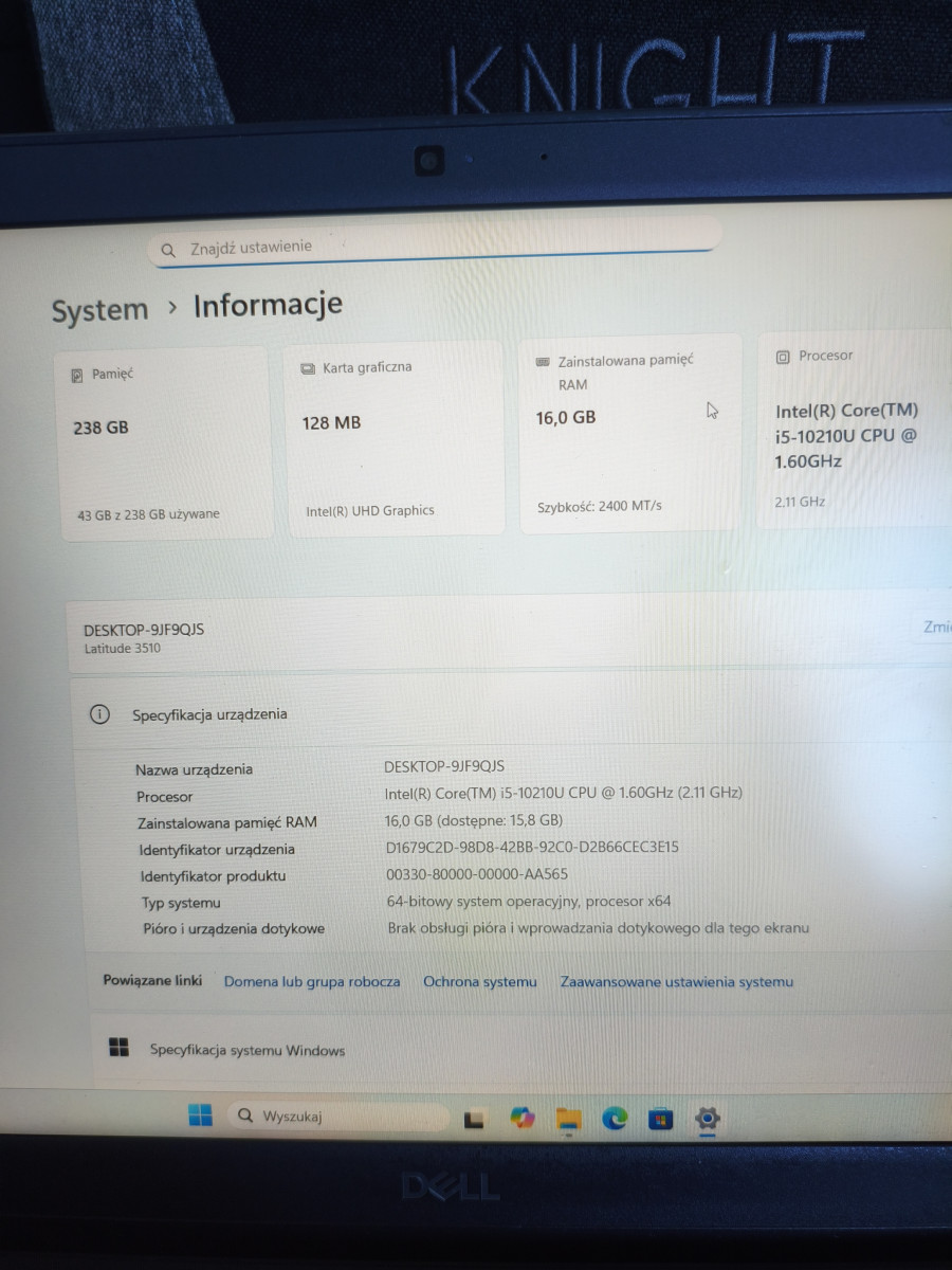 Na sprzedaż mam laptopa Dell Latitude 3510 15 cali FullHD.