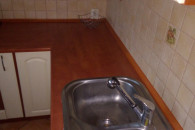 W kuchni znajduje się lodówka z zamrażarką kuchnia gazowa oraz butla do niej. Mały stolik przy którym mogą usiąść 2-3osoby. W korytarzu jest duża szafa z lustrem. W małym pokoju mniejsza szafa. WC oddzielnie. W łazience znajduje się umywalka oraz kabina prysznicowa. Ciepla woda z sieci.