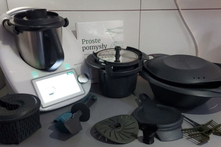 Thermomix 6 stan bardzo dobry urządzenie bez śladów użytkowania. Napis Thermomix w stanie idealnym bez oznak ścierania. W zestawie dodaje akcesoria wartości 1200 zł :