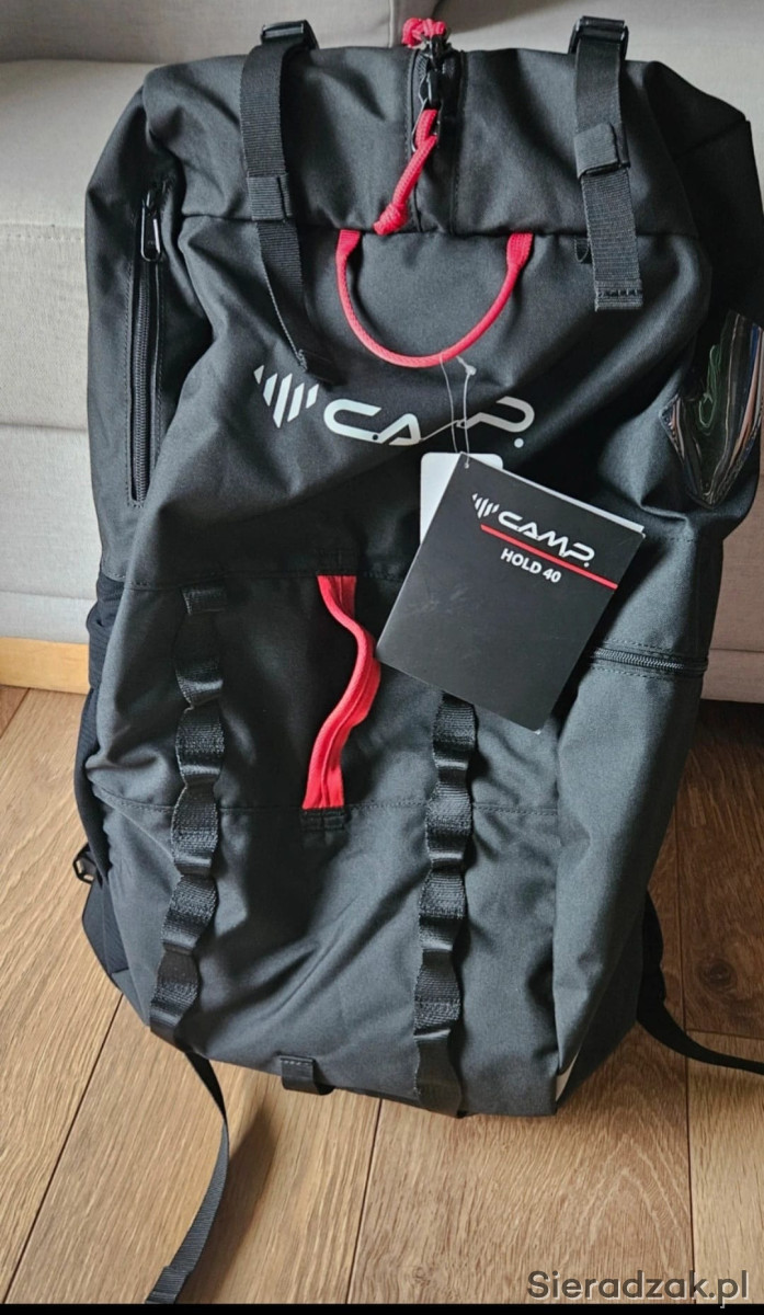 Sprzedam Plecak na sprzęt Camp HOLD 40L nowy, Unikatowa konstrukcja z zamkiem po stronie pleców chroni system nośny przed zabrudzeniem w czasie pakowania i rozpakowywania sprzętu. Wyściełane szelki i trzy uchwyty w różnych miejscach plecaka ułatwiają jego przenoszenie. Na zewnątrz do dyspozycji są jeszcze 2 taśmy z szlufkami i dwa długie troki do przyczepiania dodatkowego ekwipunku i długich lin. Drobne akcesoria można bezpiecznie schować w dwóch kieszeniach na zamek a niestandardowe formaty zmieszczą się w elastycznej kieszeni z siatki. Pakowanie i przeglądanie zawartości ułatwia długi zamek z dwoma suwakami oraz 2 wewnętrzne pętle do przyczepienia karabinków. Plecak ma zwartą i prostą budowę, wykonany został z mocnego materiału o grubości 600D.