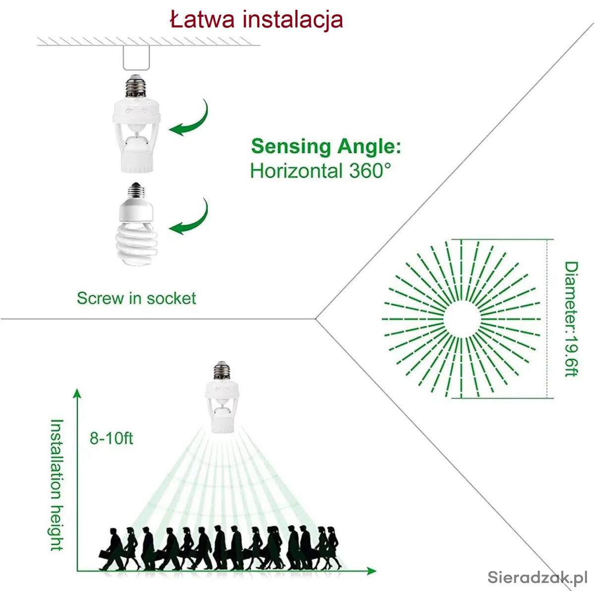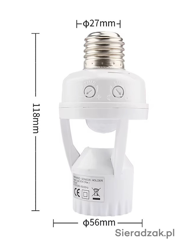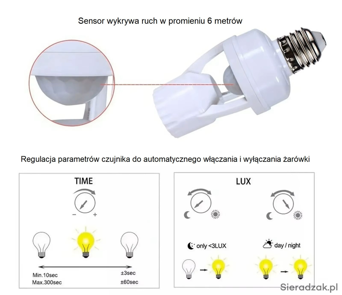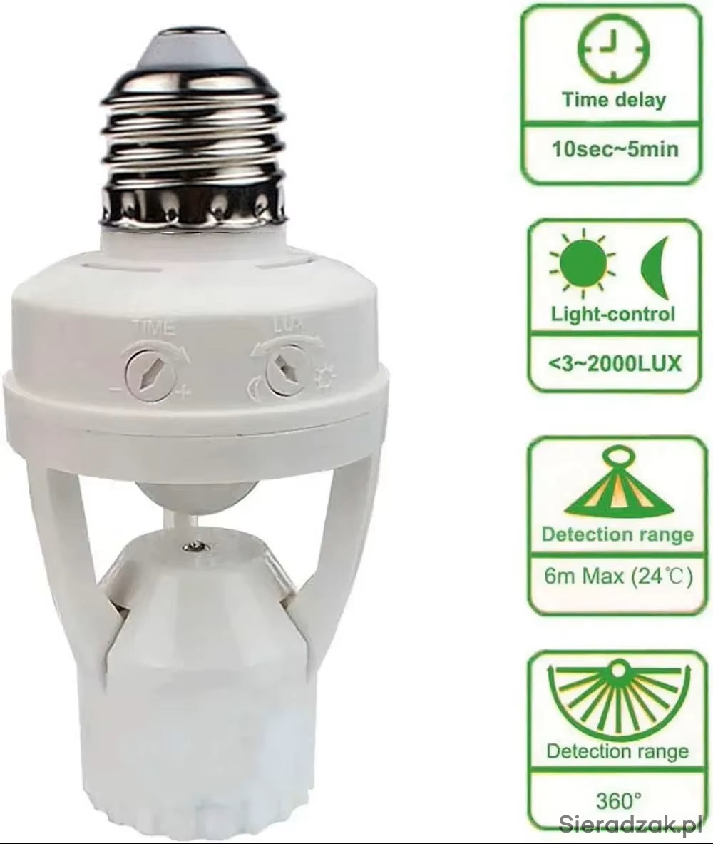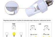 Inteligentne urządzenia do automatycznego włączania i wyłączania żarówki z gwintem E27. Na korpusie znajduje się regulacja czasu świecenia i czujnika reakcji natężenia światła.