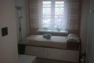 2. Pokój sypialniany wyposażony w szafę pprzesówną na całej długości pomieszczenia
