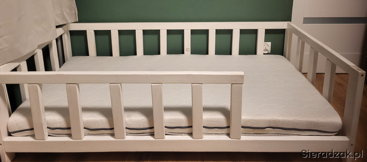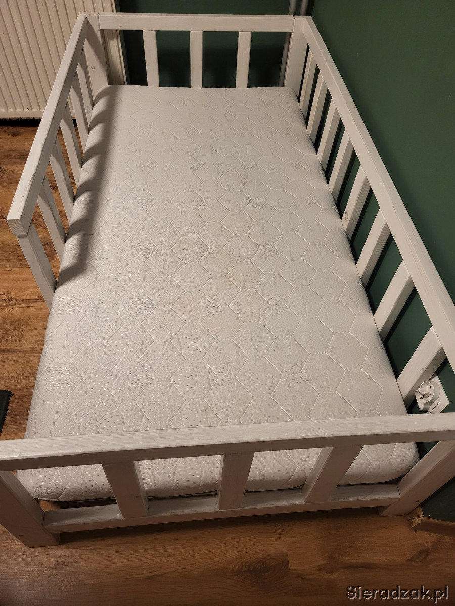 Sprzedam białe, sosnowe łóżko na nóżkach dla dziecka, z materacem 160x80.