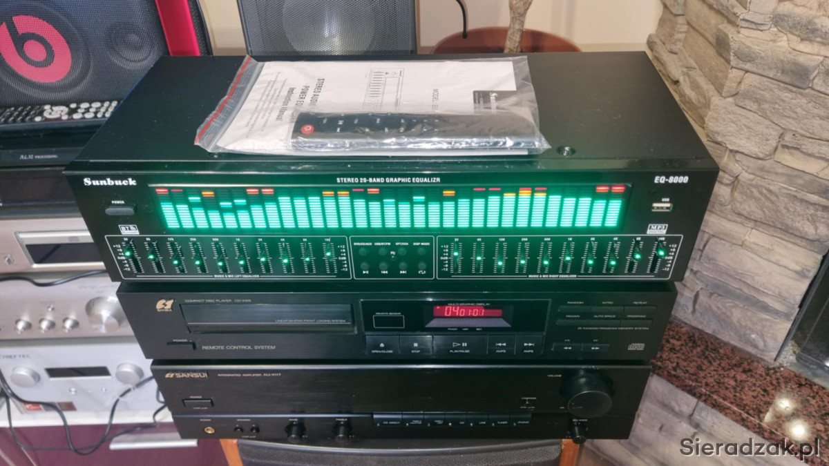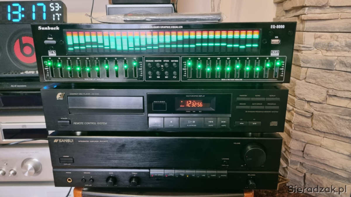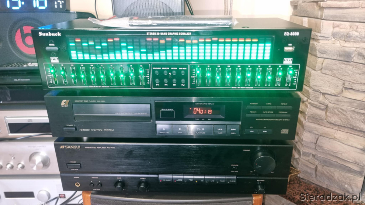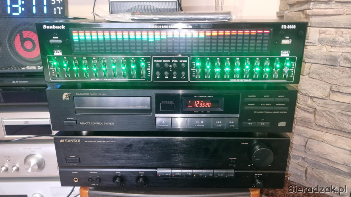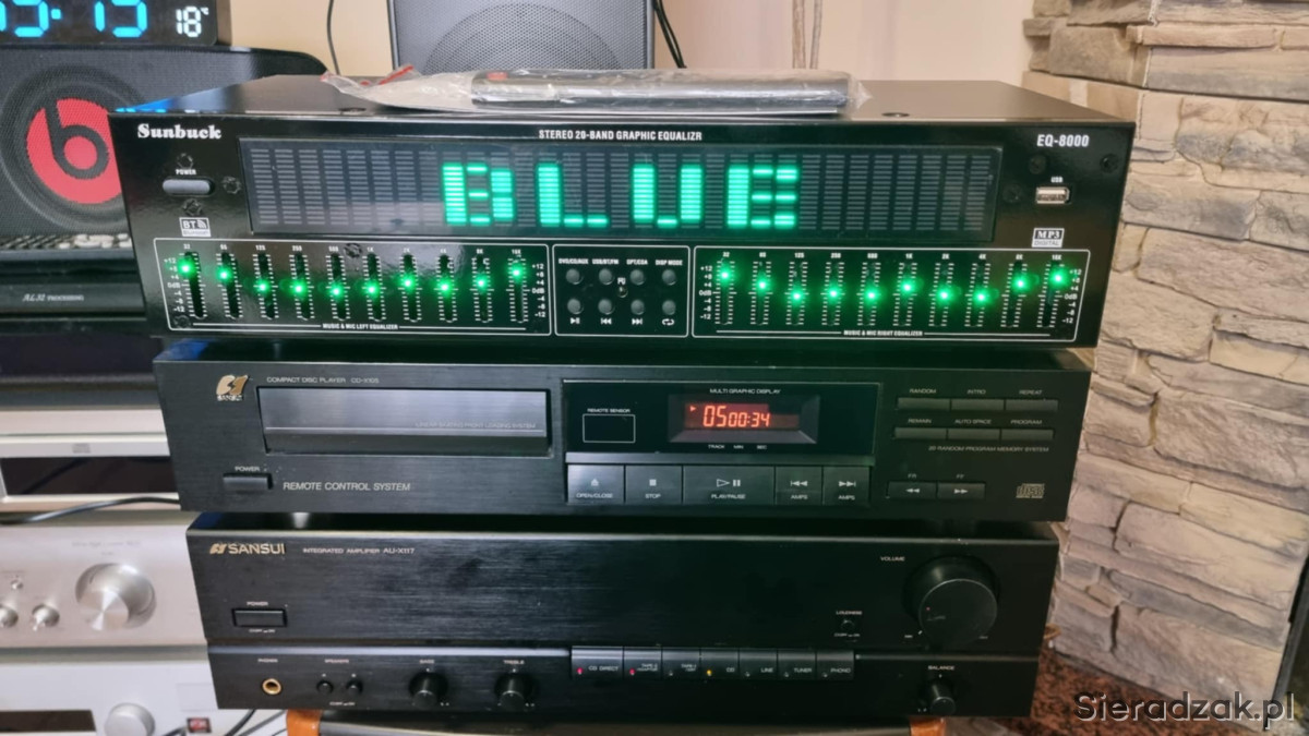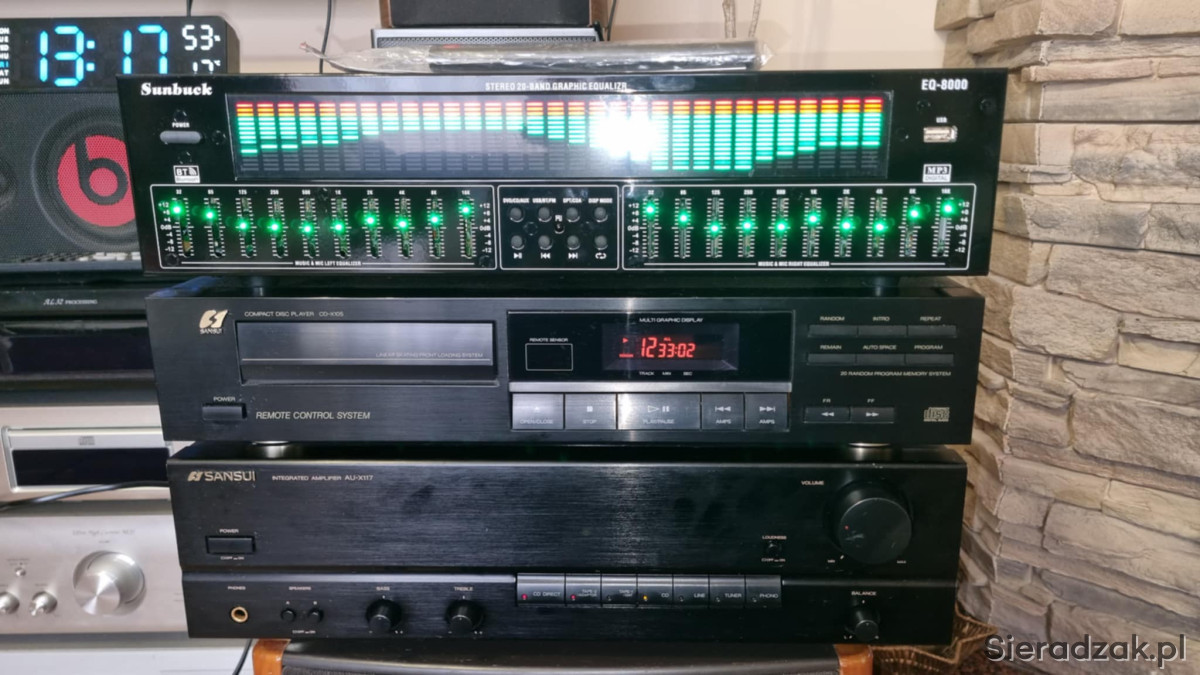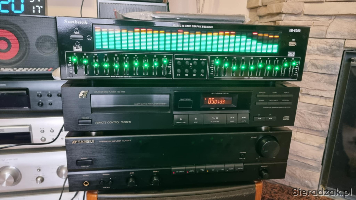 Wzmacniacz SANSUI AU-X117 2x40W 8ohm i odtwarzacz CD Sansui CD-X105. Korektor EQ-8000 z bluetoothem i wejściem cyfrowym optycznym i kaoksjalnym i pilotem.